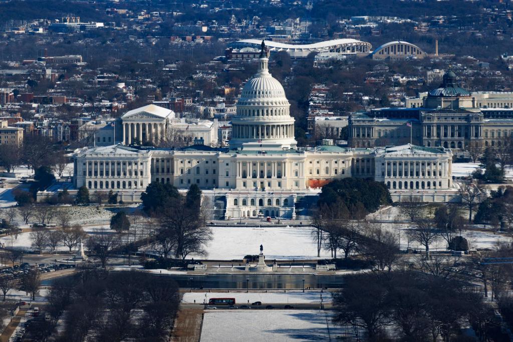 这是1月17日在美国首都华盛顿拍摄的雪后的国会大厦。新华社发(亚伦 摄)