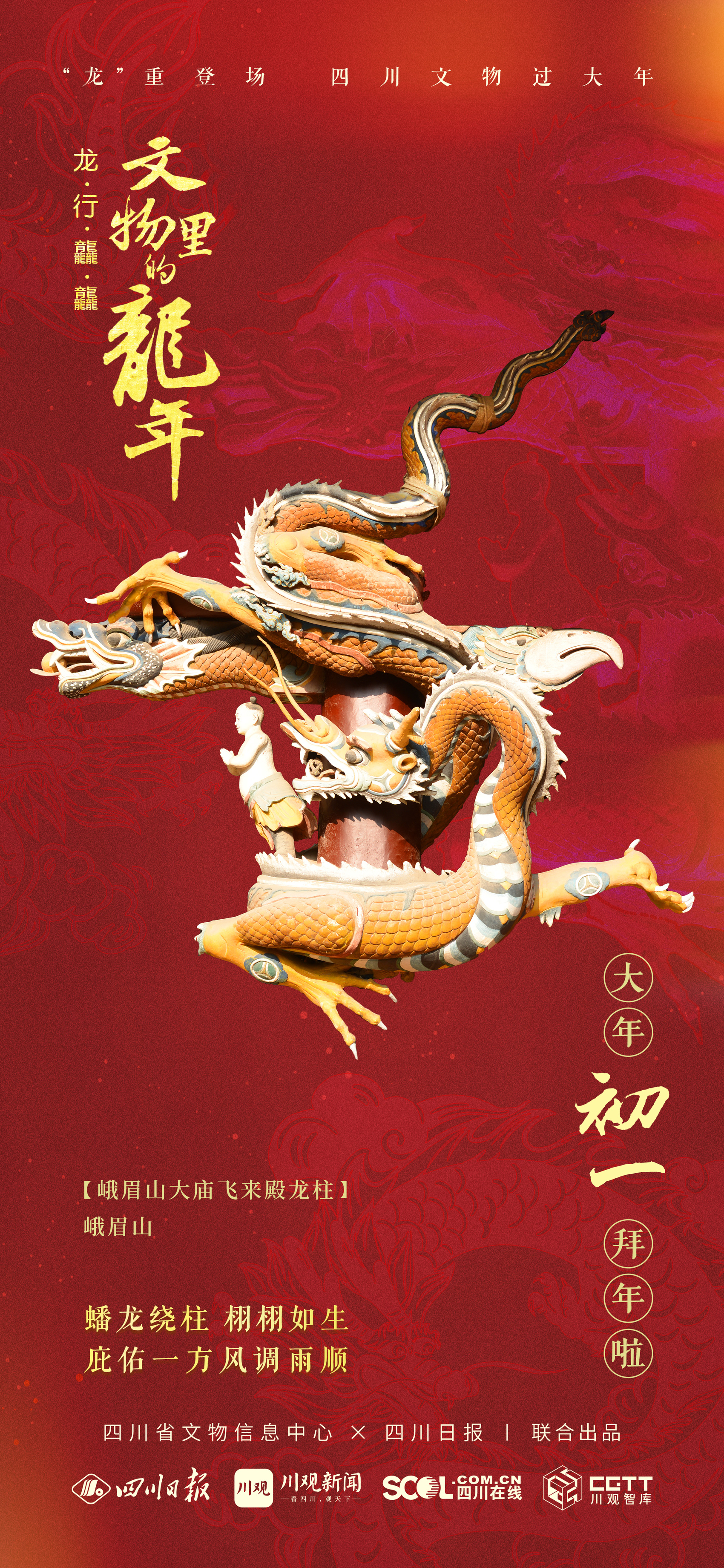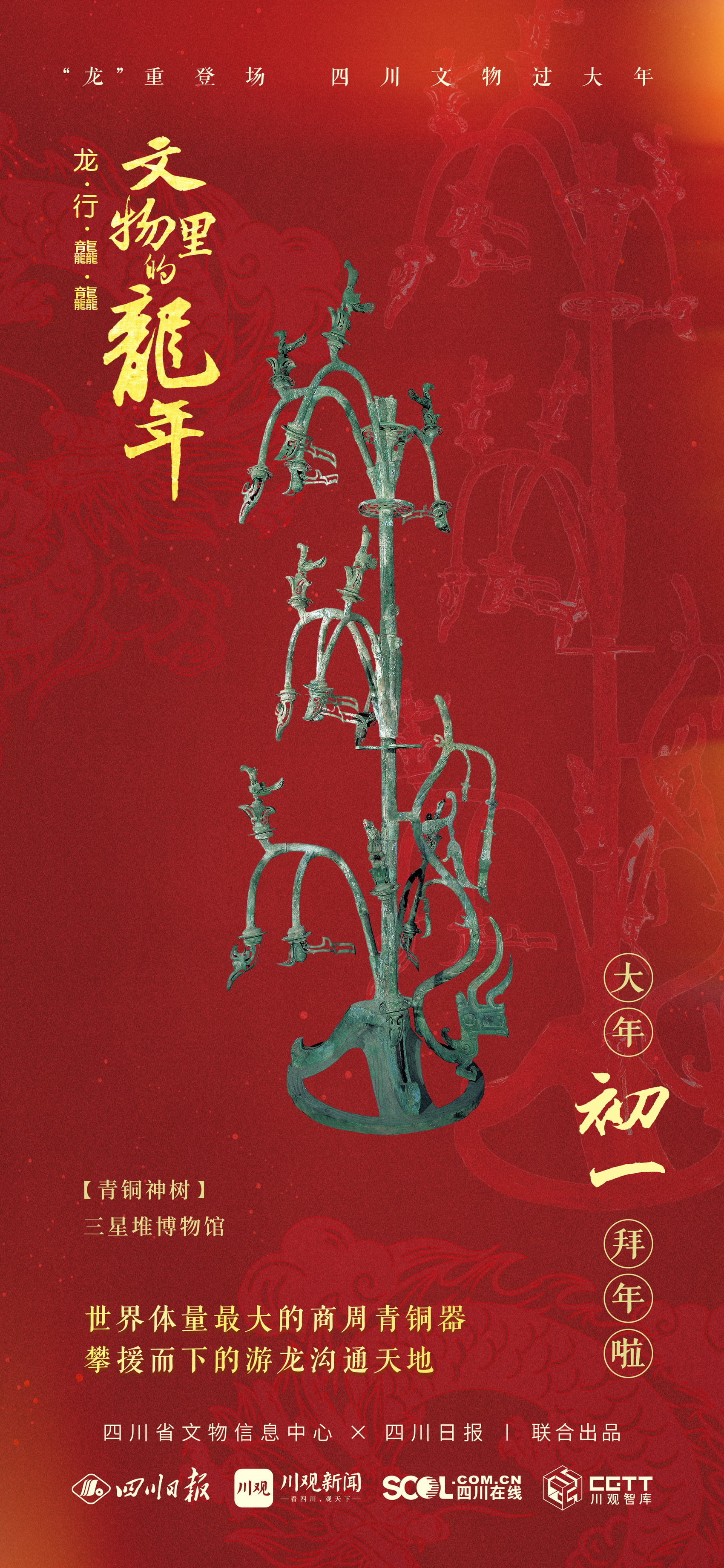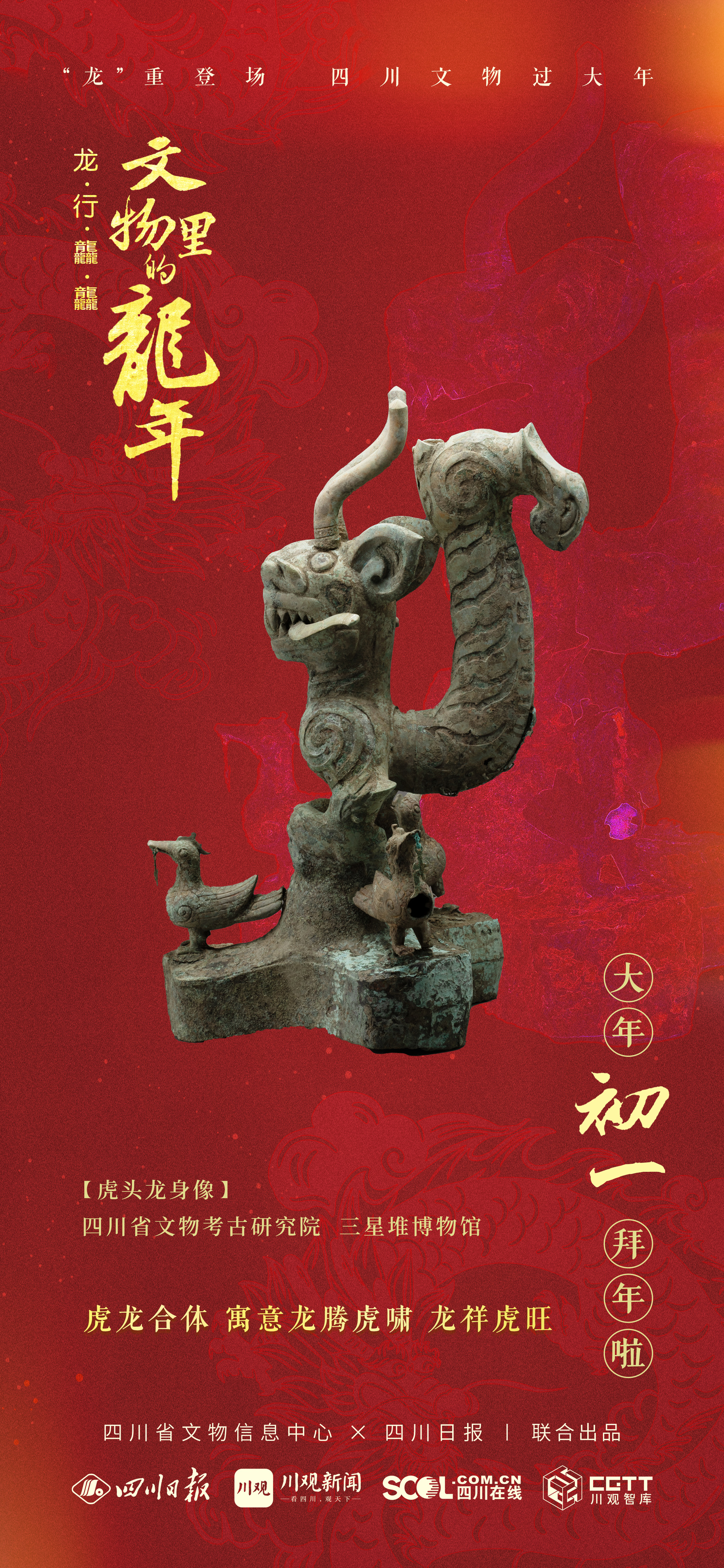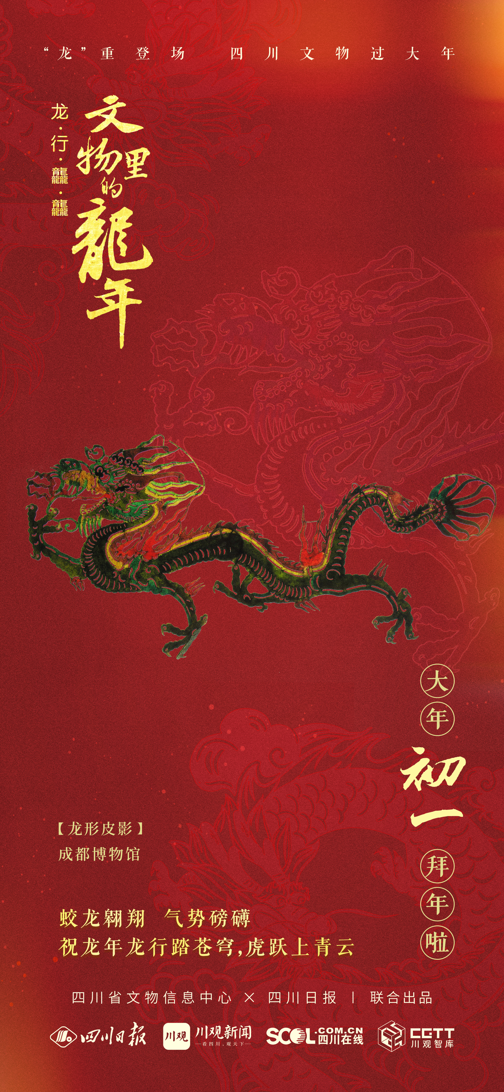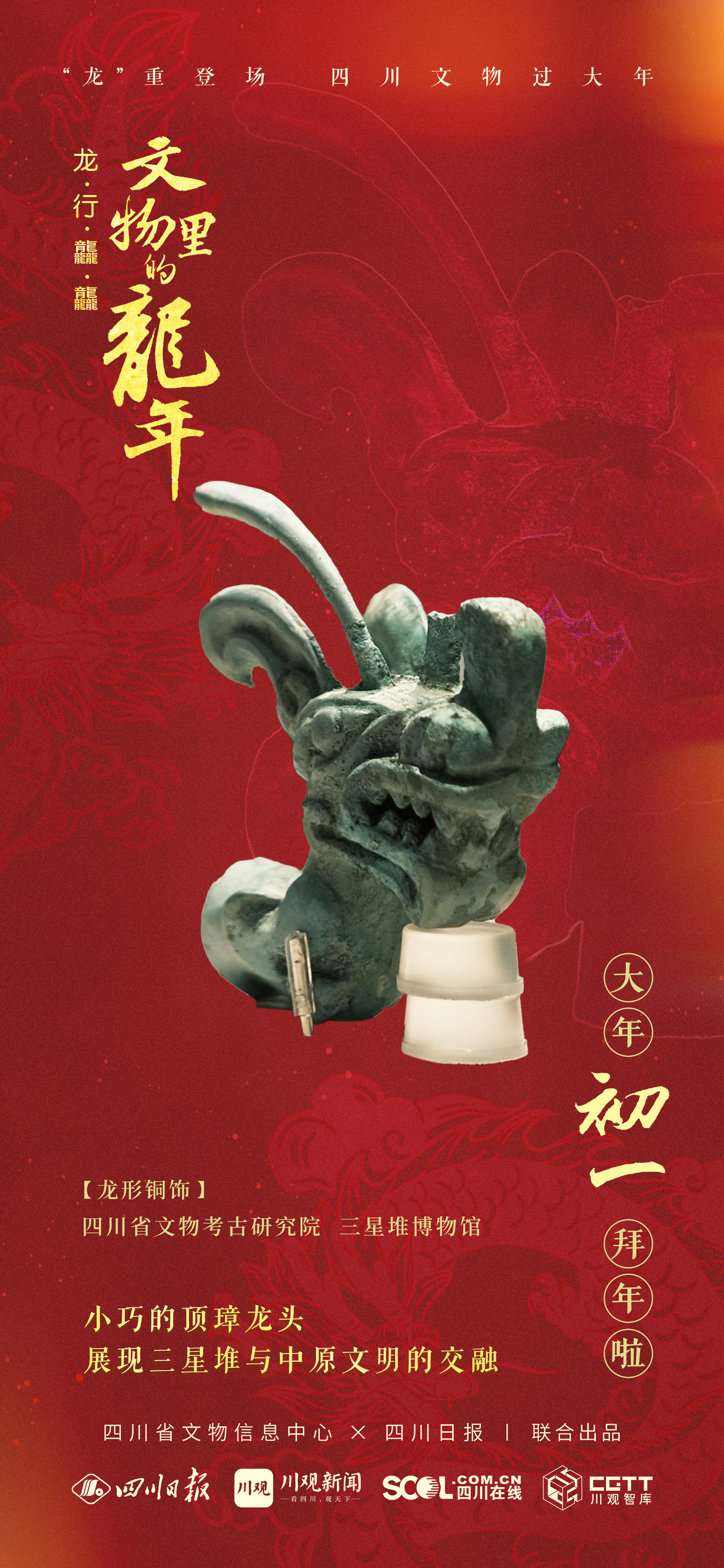 在神州大地张灯结彩、喜庆祥和的氛围中,我们终于迎来了龙年。龙腾虎跃、龙马精神、龙凤呈祥,与龙有关的滚烫祝福已随着电话或网络传递给亲人和朋友。今天,也是川观新闻“龙行龘龘——文物里的龙年”系列主题海报推出的第一天。我们将请出一组和龙有关的文物给大家拜年啦——