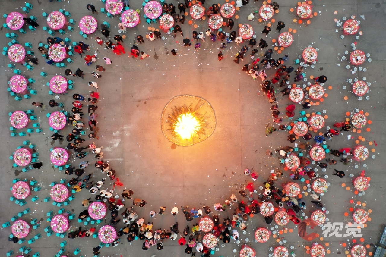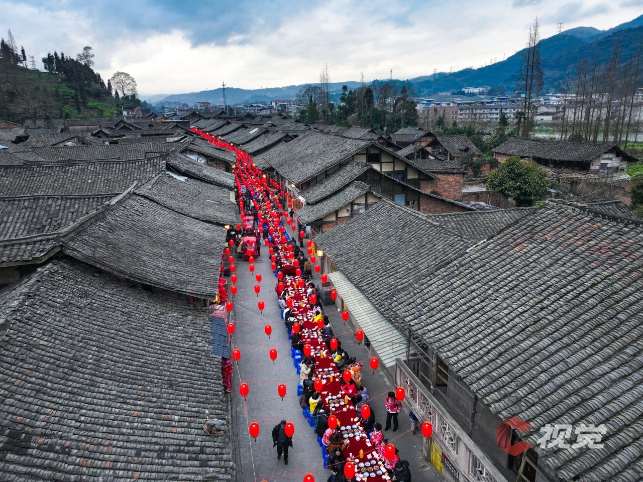 雅安市荥经县第四届古道长街宴上,1314位宾客桌连桌、凳接凳,共品千人长桌宴,过年的仪式感满满,浓浓的年味儿扑面而来。
