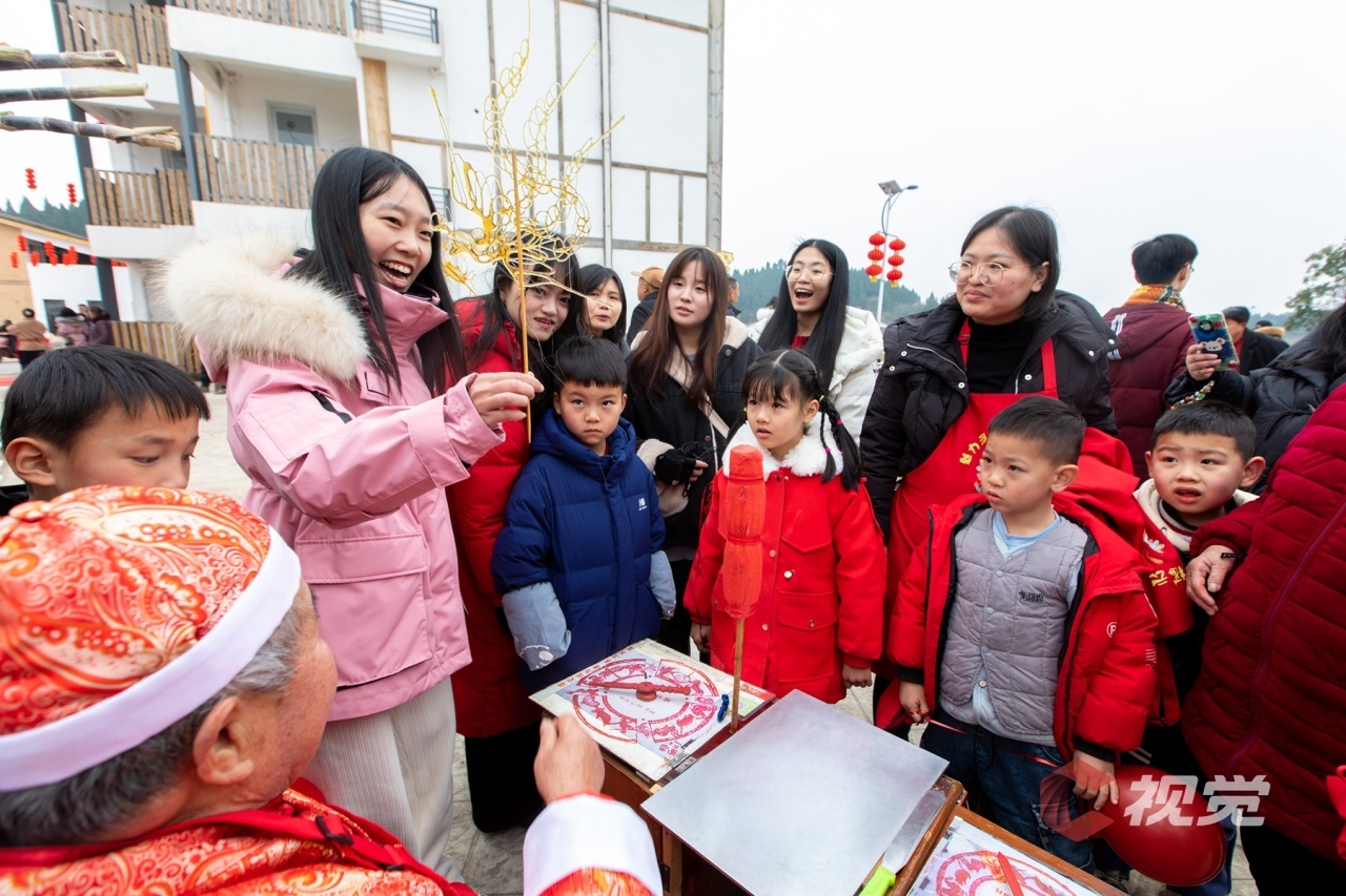 遂宁市河东新区云灵新村举办趣味文化活动,294户新村居民团聚在一起,以吃庖汤,看歌舞,吃糖人,摸“福”字等方式,一同迎接龙年春节到来。