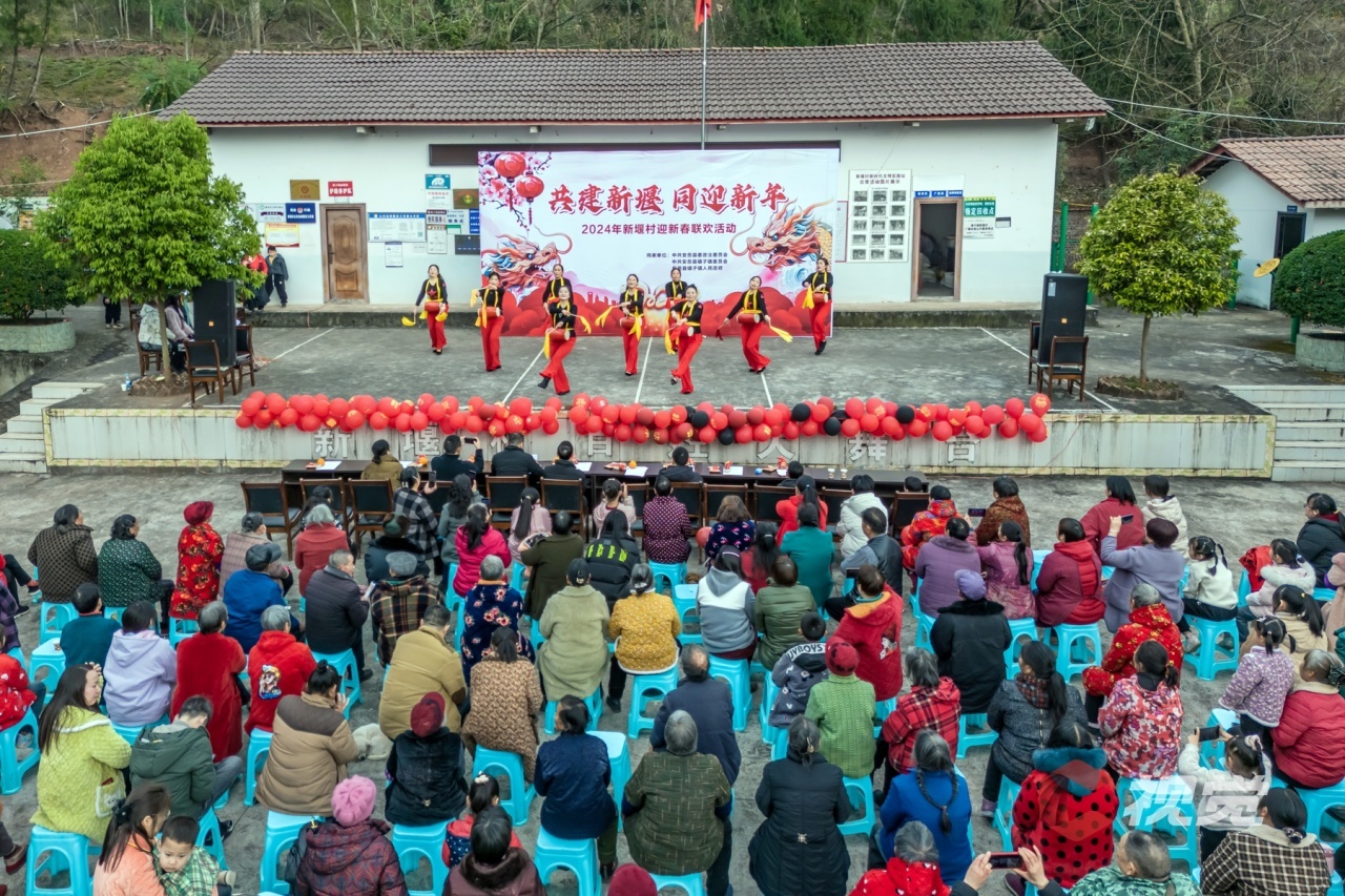 宜宾市长宁县长宁镇洪谟社区紫竹小区,130户居民欢聚一堂,吃坝坝宴,共叙邻里情,喜迎龙年新春。