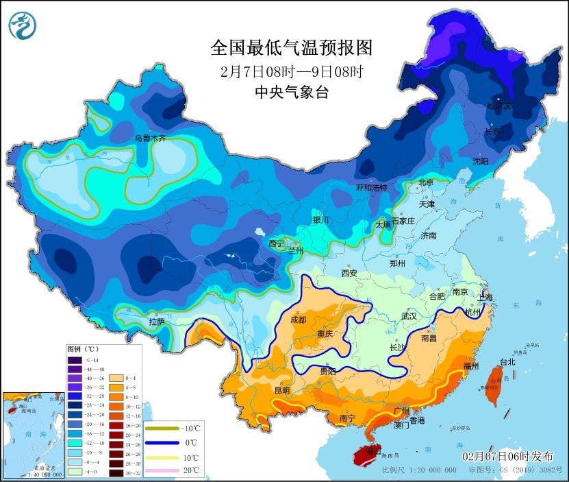 中央气象台2月7日06时继续发布低温蓝色预警: