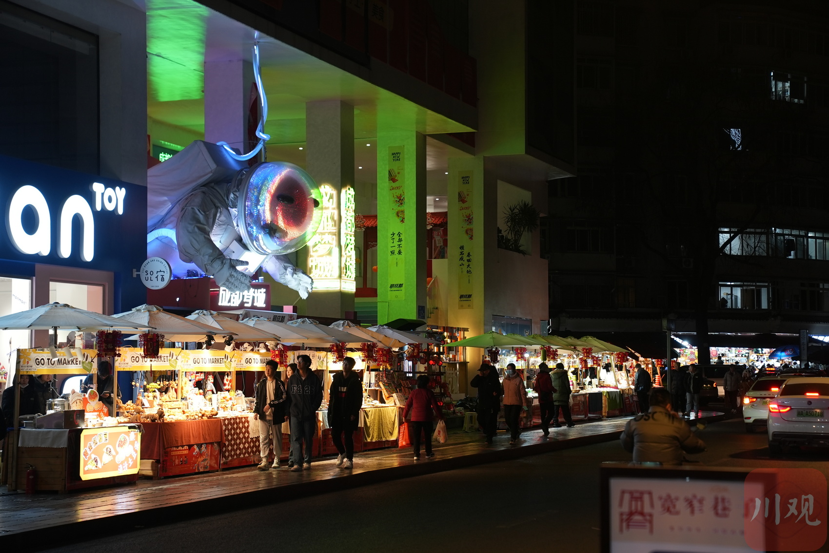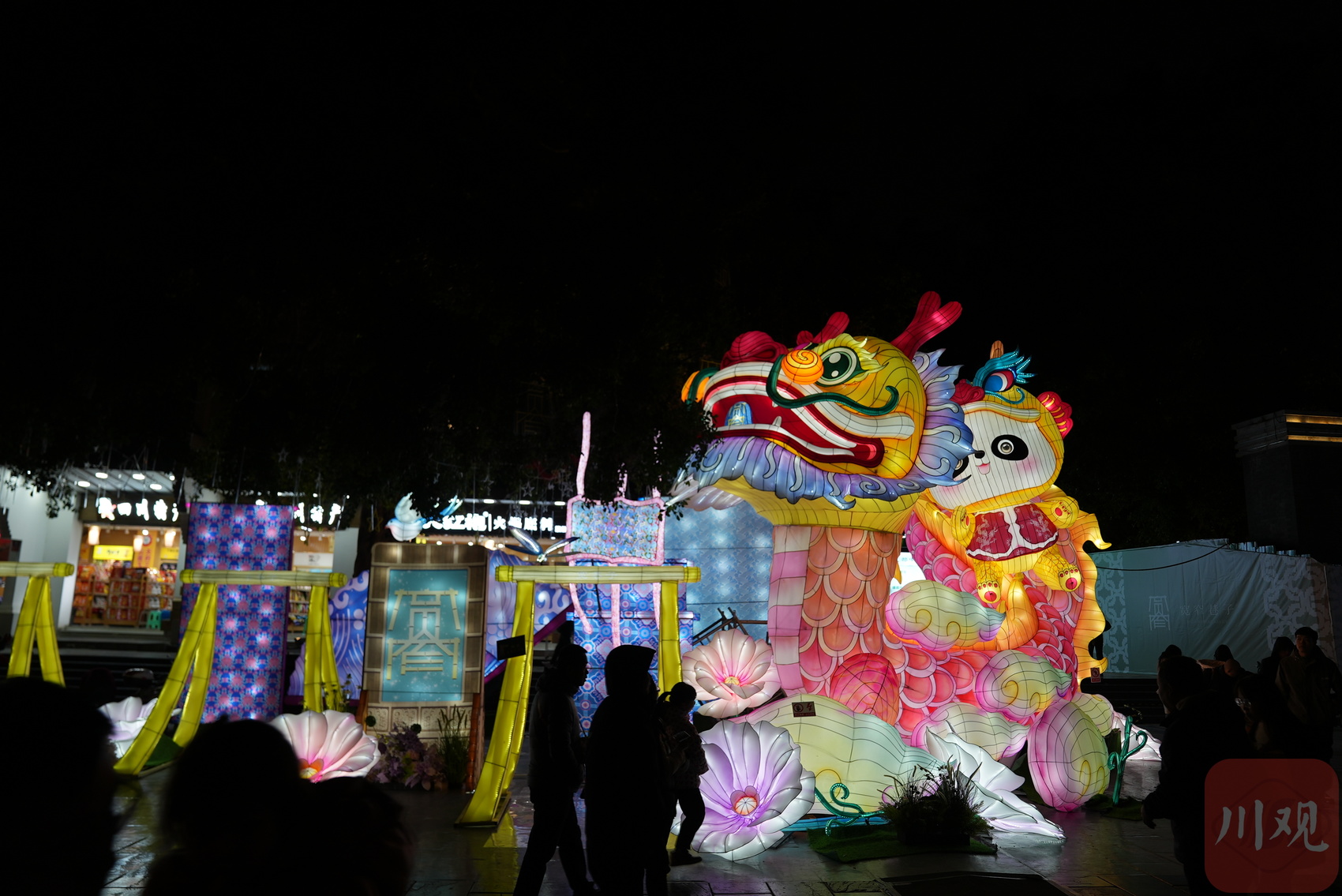 位于宽窄巷子东广场上的灯组,兼具了龙年与大熊猫的元素