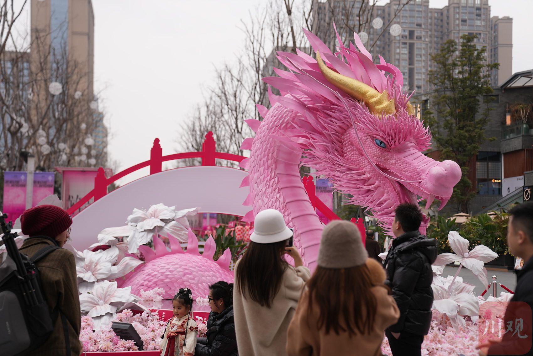 近日,位于成都铁像寺水街的一条巨型粉龙火了。在各大网络社交平台上,粉色巨龙在各地龙形彩灯、装置等龙年元素场景中,显得格外抢眼。