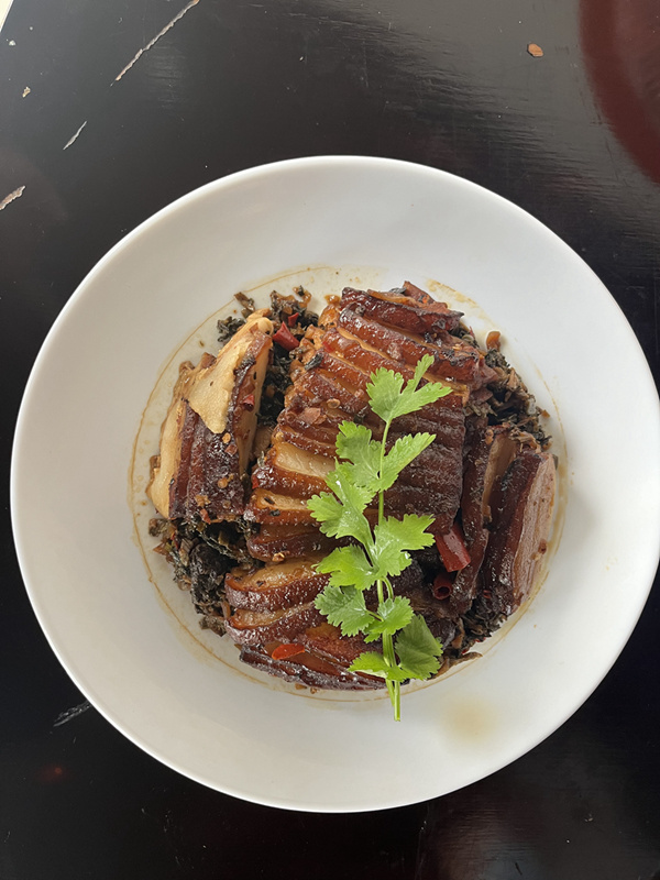 菜单:腊拼盘(心、舌、香肠)、口水鸡、爽口木耳、青椒皮蛋、梅菜扣肉、粉蒸排骨、水煮鱼、小煎鸡、红烧牛肉、白油肚条、火爆猪肝、粗粮排骨汤、酸辣白菜、青椒土豆丝、豌豆尖汤。