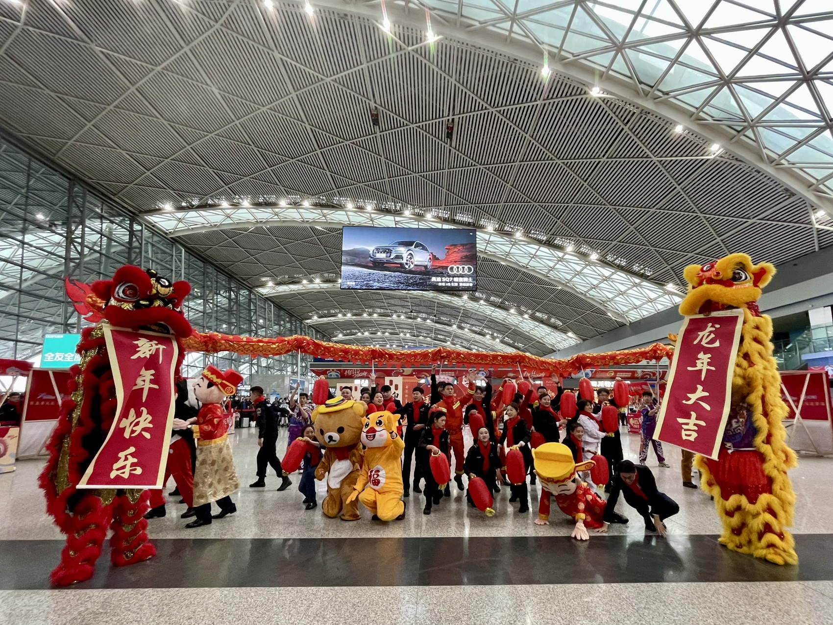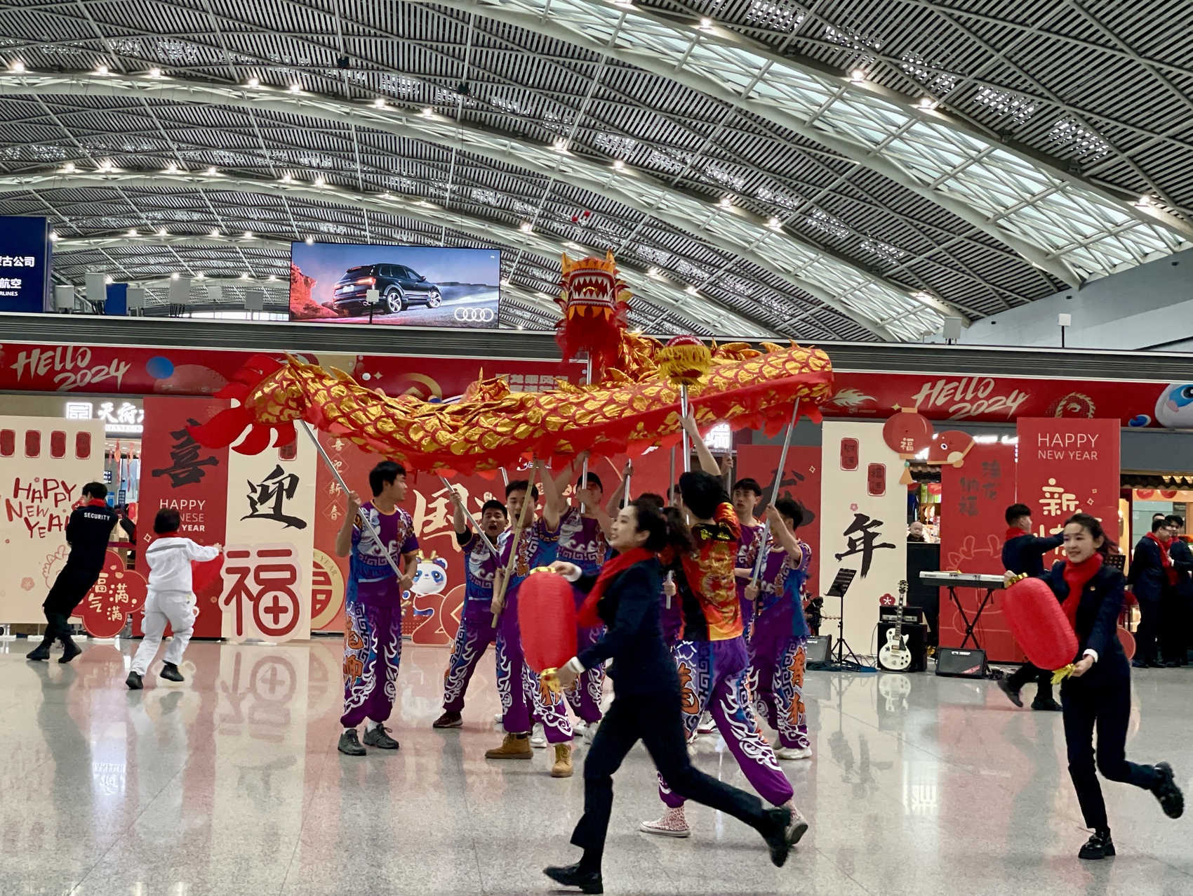 “双流国际机场深度融合了巴适空港的服务品牌,邀请了众多驻场单位,联合为观众呈现了一场国潮视觉盛宴。我们希望通过这样的方式和活动,让旅客带‘ 福’回家,能够让旅客感受到双流国际机场的温情和巴适又安逸的浓浓年味儿。”成都双流国际机场股份有限公司团委书记张梦蕊介绍,本次主题活动不仅兼具传统与现代的系列表演,还设置了包括写春联、剪窗花、猜灯谜等10个年俗互动体验区,活动现场热闹非凡。