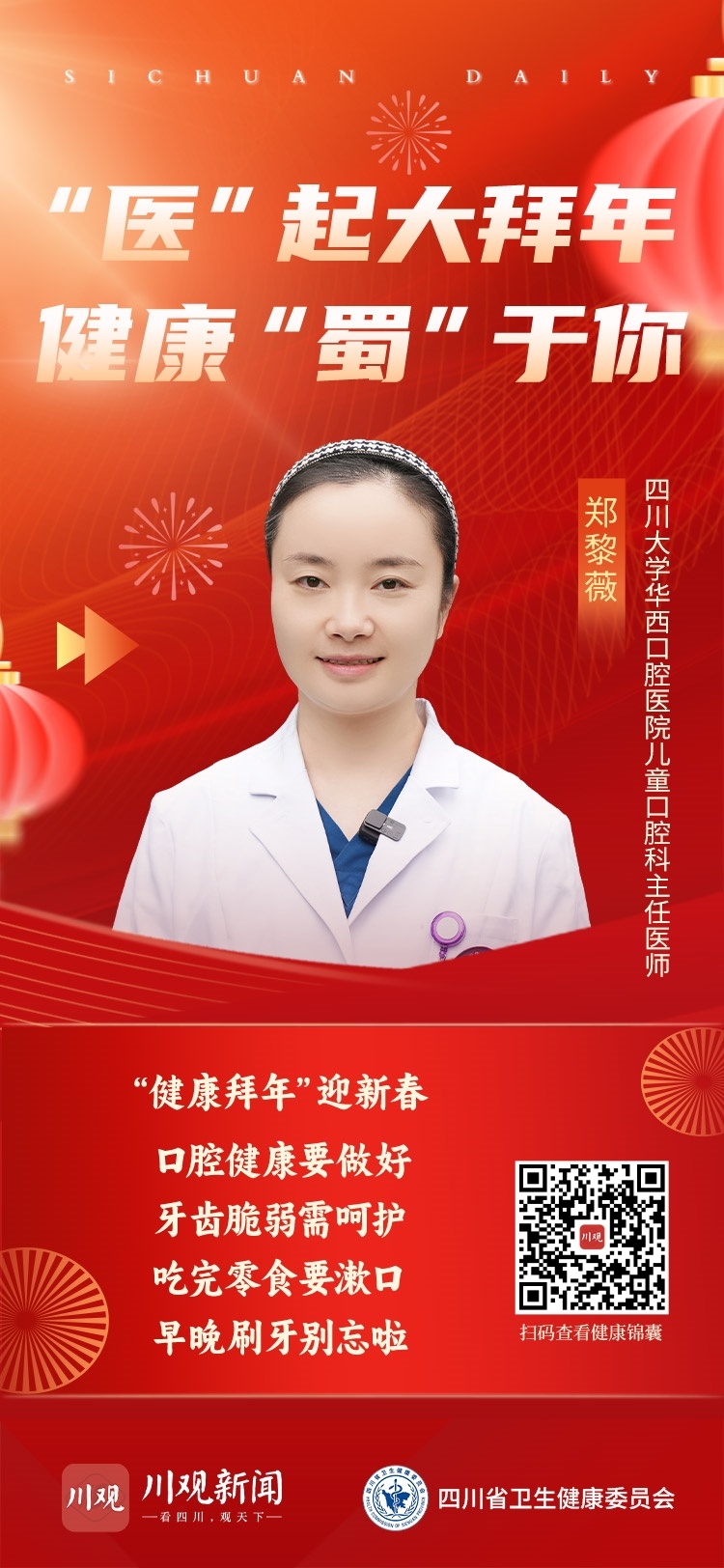 春节期间,人们不仅要享受美食佳肴,更要注意保护口腔健康,对于欢庆寒假和春节的小朋友来说,在牙齿保健方面应该注意什么?本期邀请到四川大学华西口腔医院儿童口腔科郑黎薇教授为您健康支招。
