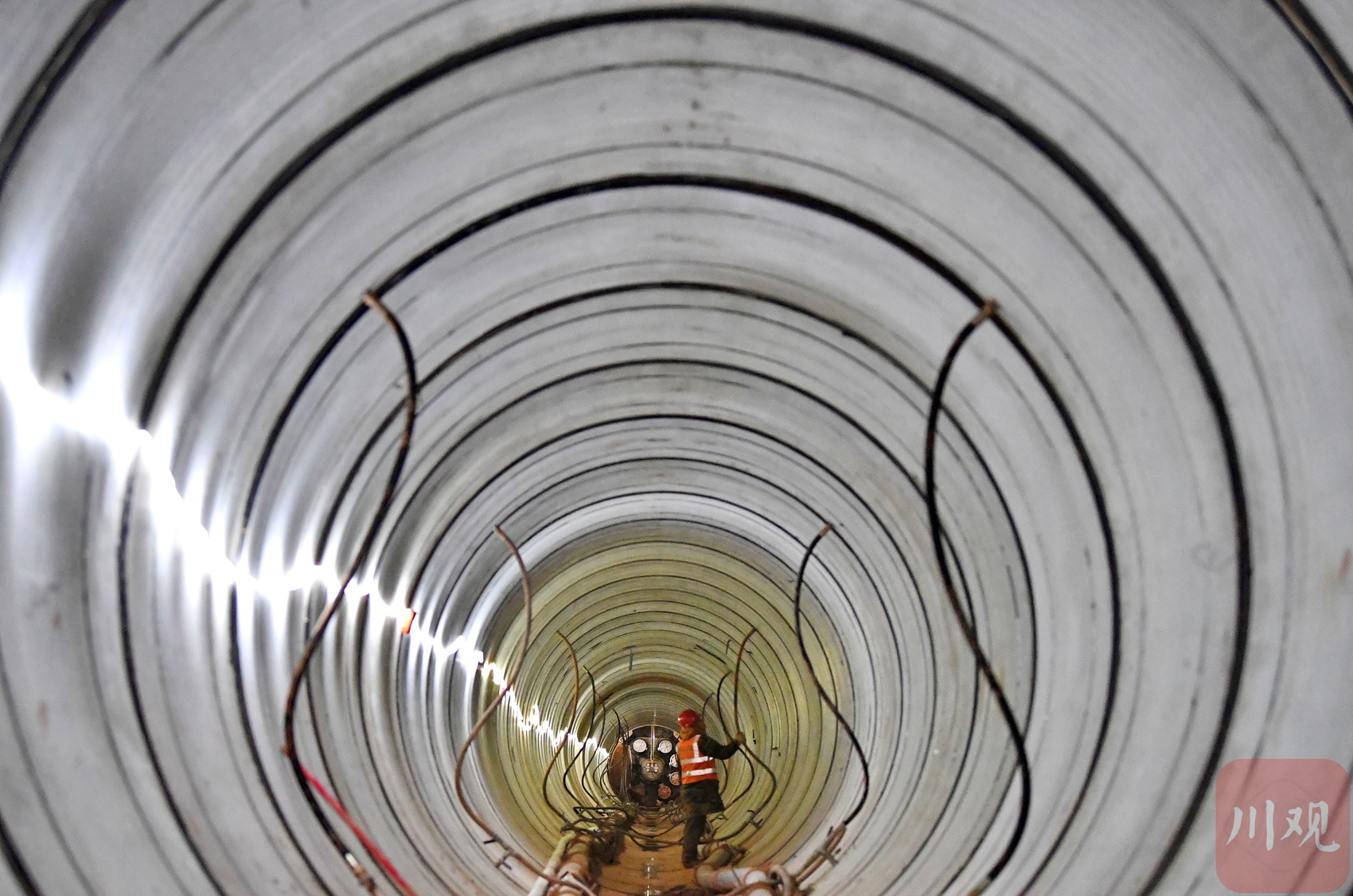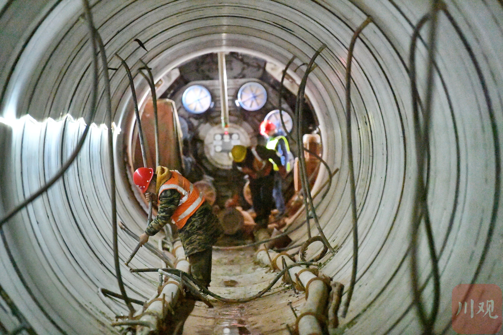建设者在位于地面以下27米的电力通道机械顶管作业区域,进行日常维护和巡查。