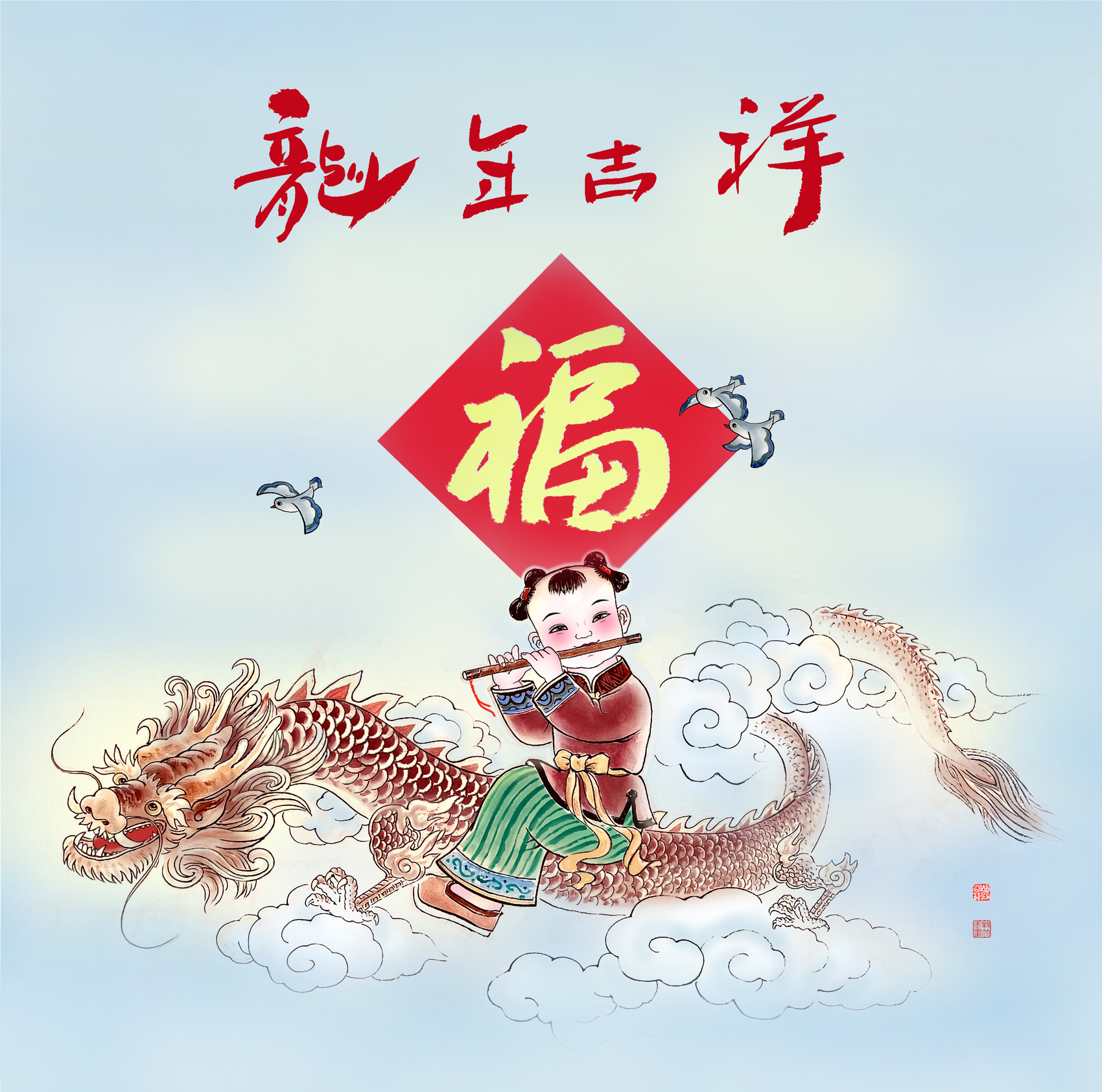龙年吉祥(绵竹年画),尺寸:80cm×80cm,胡光葵 作