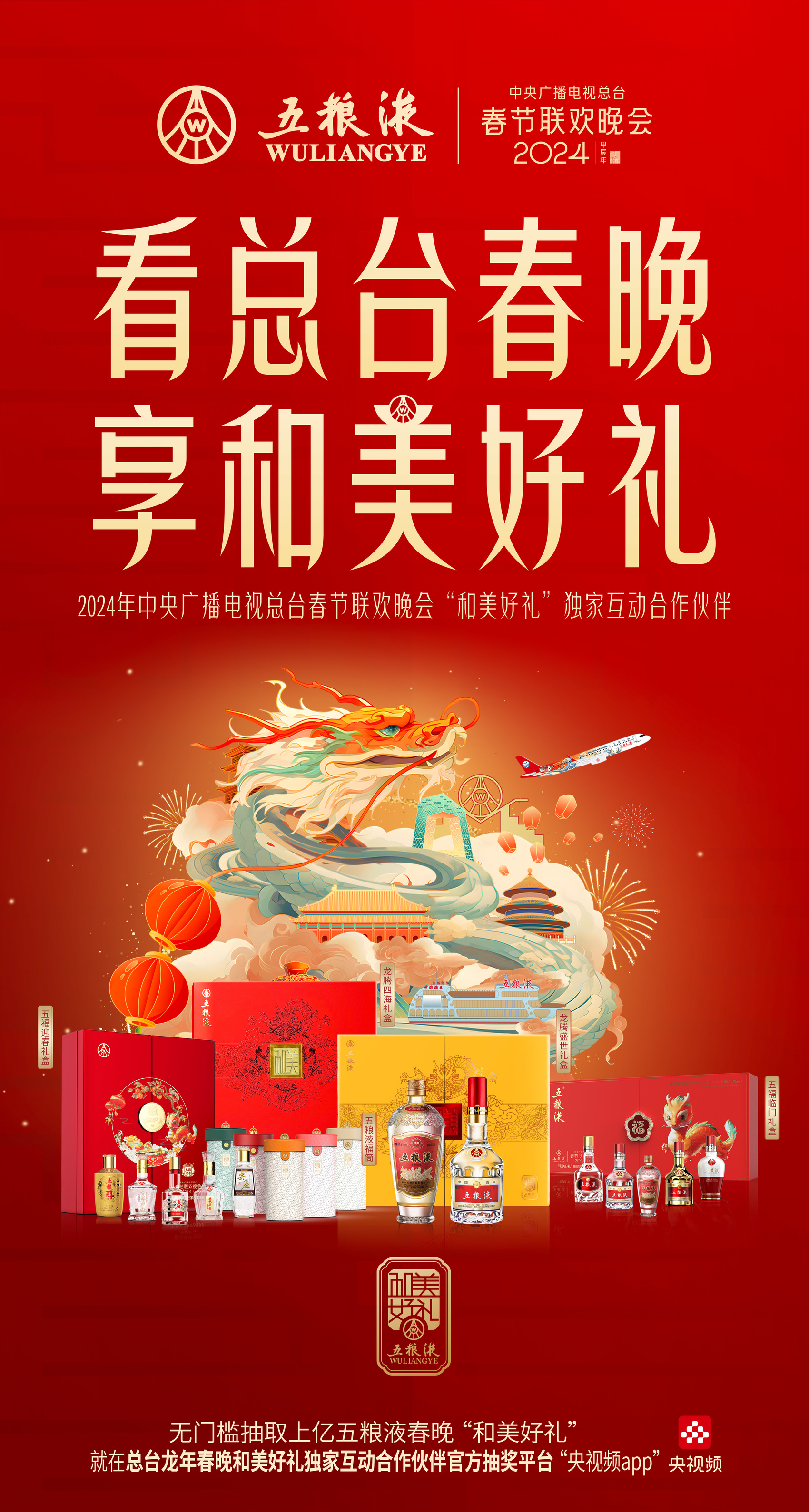 龙行龘龘,欣欣家国!在这个辞旧迎新、阖家团圆的除夕夜,五粮液再度携手央视春晚,向全球观众送上价值上亿元的“和美好礼”!