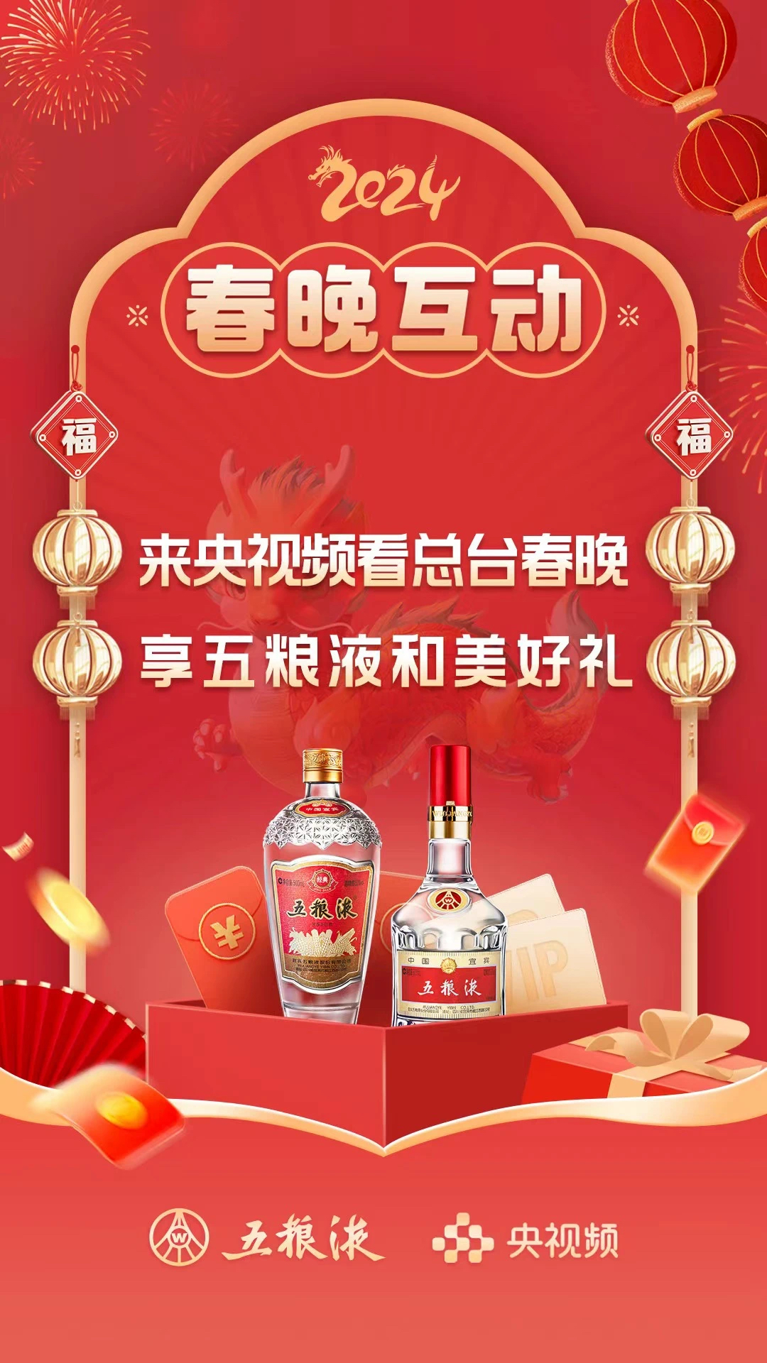 1月30日,央视频客户端和五粮液同步官宣:2月9日晚8时,央视频作为中央广播电视总台龙年“春晚互动”旗舰抽奖平台,将再度携手总台春晚“和美好礼”独家互动合作伙伴五粮液,在“和美好礼”互动专区抽取价值上亿元的五粮液龙年礼盒,为全球华人营造一个喜气洋洋、惊喜满满的欢乐中国节!
