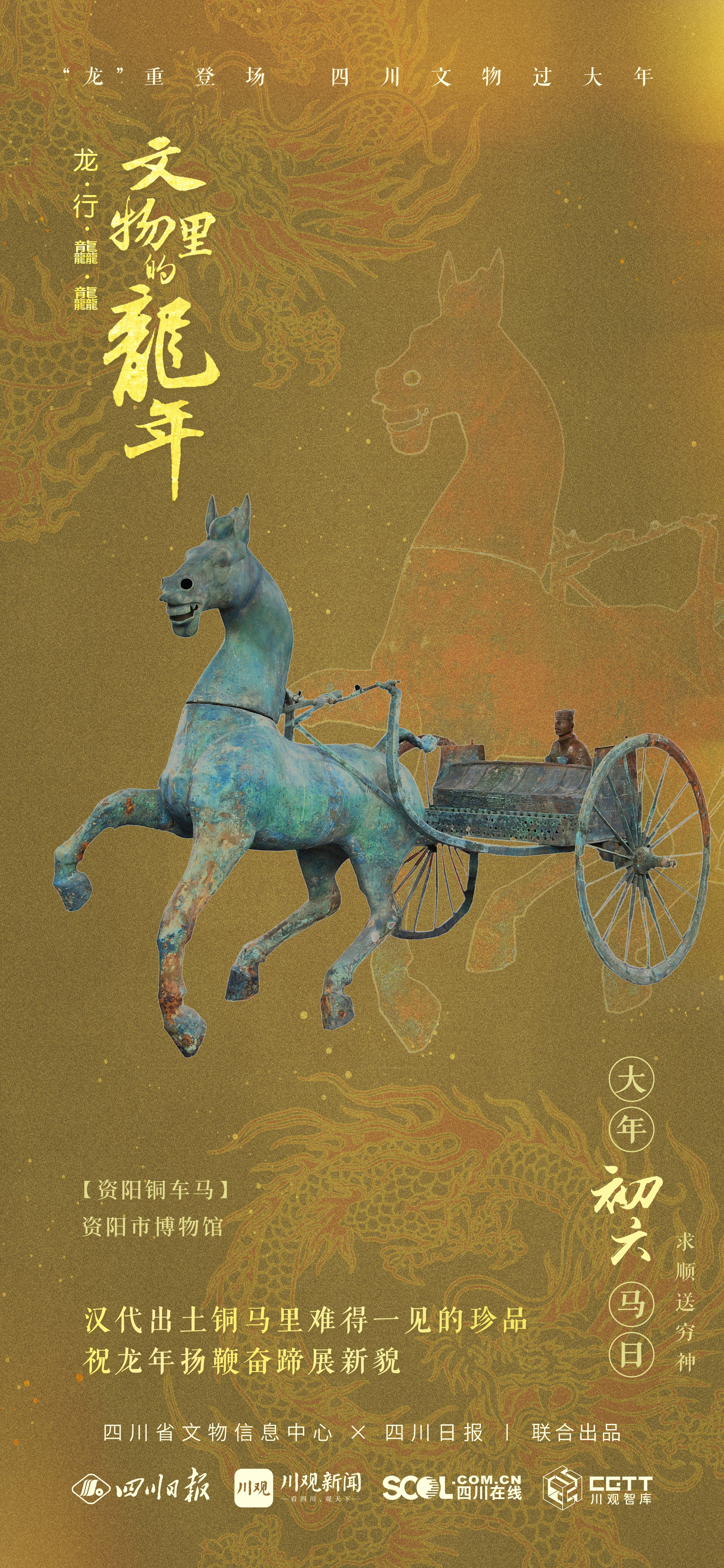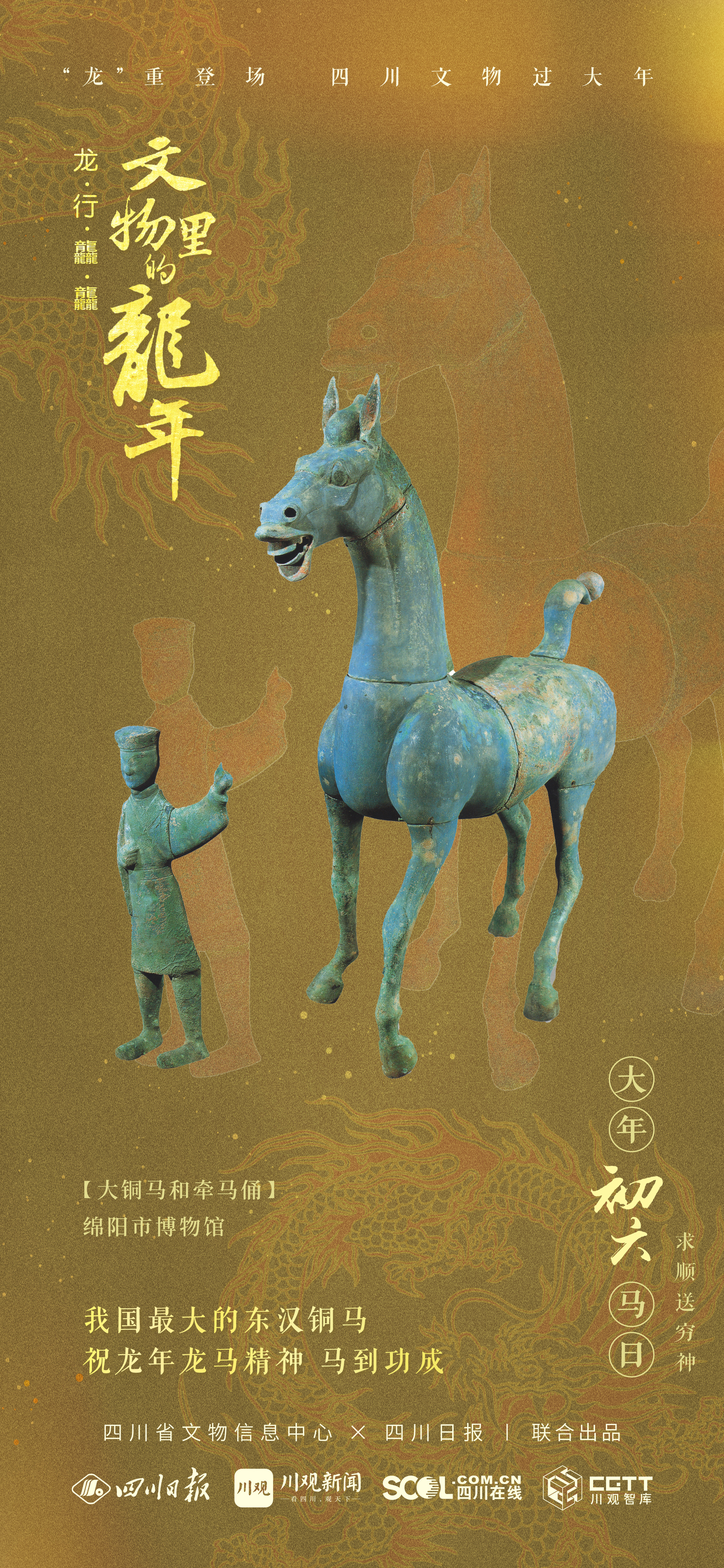 在四川的文物中,有很多和马有关的元素。那些高大俊逸、昂首奋蹄的奔马,让人不由联想到龙马精神、马到功成等美好寓意。