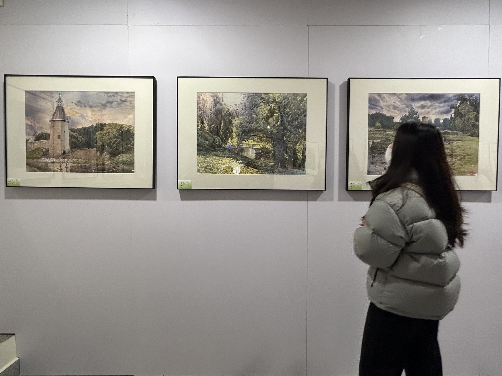 走进展厅,一幅幅画构思巧妙、独具匠心的水彩作品呈现在眼前,或浓墨重彩或清新淡雅,或恬淡闲适或激荡心灵。俄罗斯的森林、湖泊、草原、海湾、教堂……在各色水彩的晕染描绘下,变得唯美动人。水彩画爱好者纷纷在作品前,仔细端详、拍照学习、现场临摹,享受这场色彩缤纷的艺术盛宴。