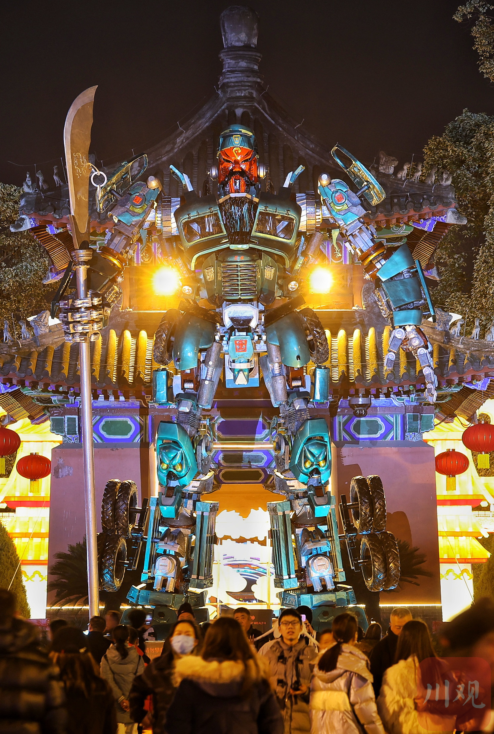 国潮风格的三国主题灯展、传统与艺术相融合的“义薄云天——关公主题精品文物展”、创新多彩的文艺演出、热闹的诸葛创意市集……本届大庙会以“三国元宇宙,潮玩成都年”为主题,为观众呈上独特的成都年味。