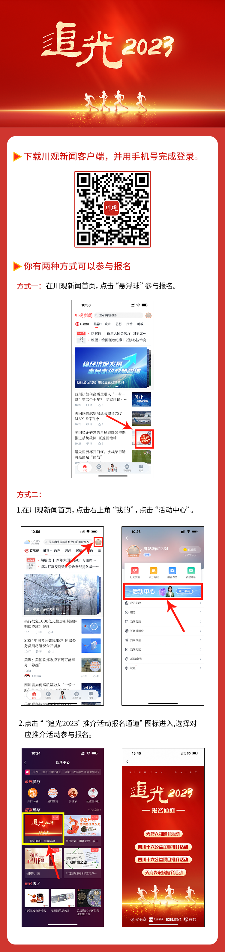 参与者可下载川观新闻客户端,点击屏幕首页的“追光2023”悬浮球,即可进入报名界面。
