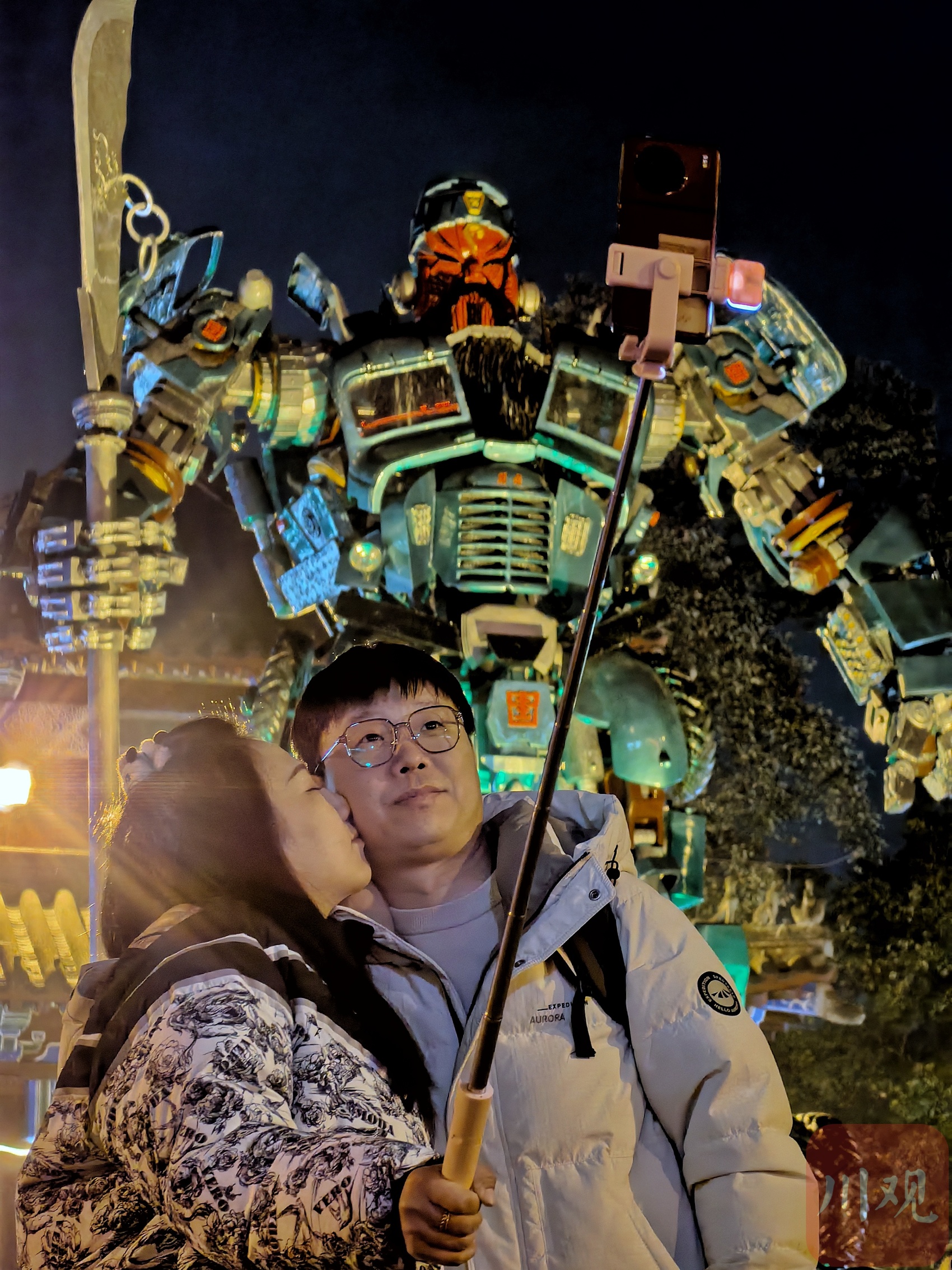 游客打卡机甲关羽。C视觉摄影师 王晓龙 摄
