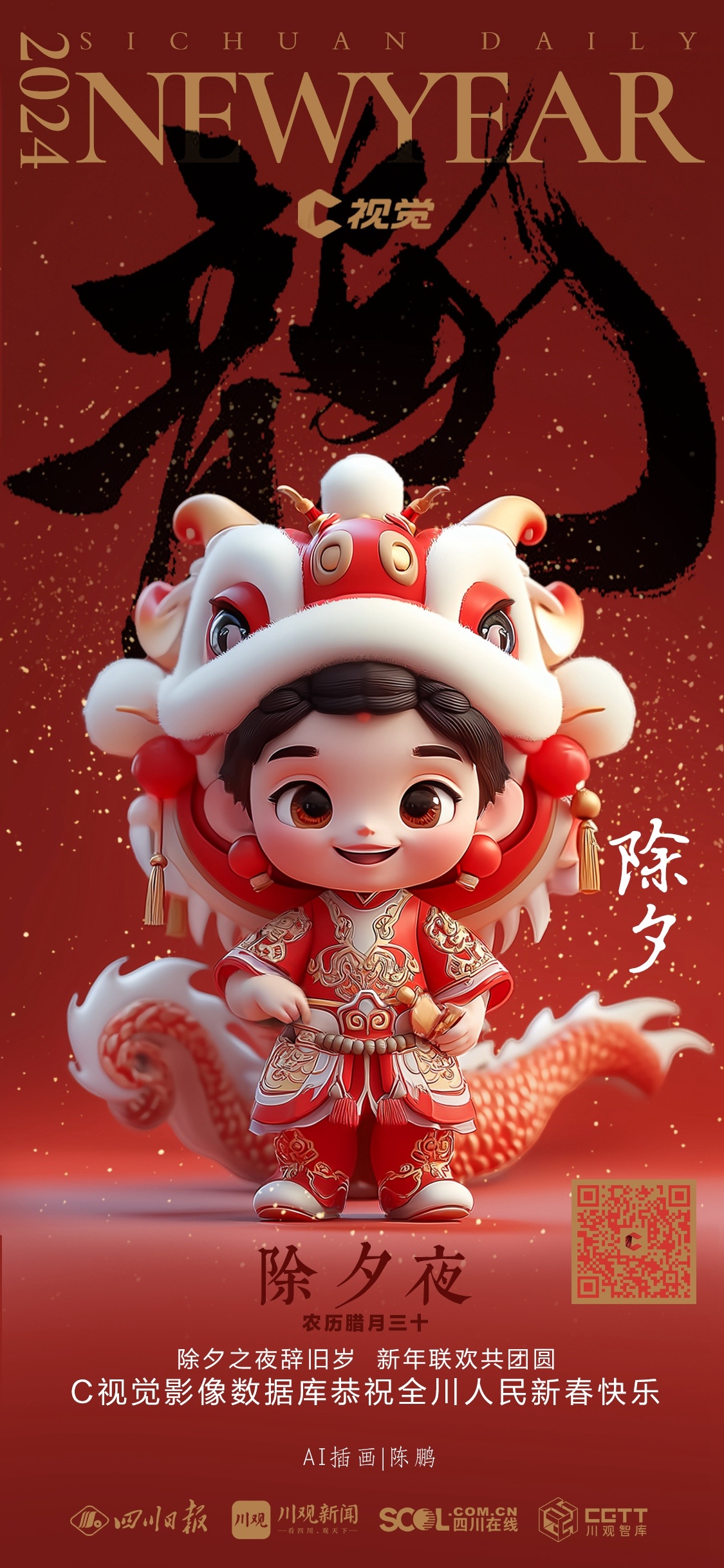 龙年春节,C视觉影像数据库的插画师结合AI人工智能绘画,设计了一组节日海报,给您送上了新春的祝福。愿您2024,所想皆所愿,所行皆坦途。