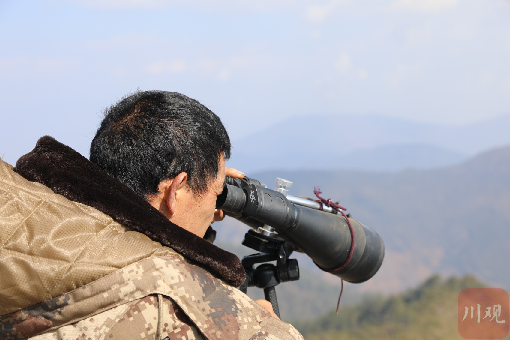 下午值守期间,余启刚一边观察着四周青山,一边跟记者聊起了20多年的瞭望生活。瞭望,看起来是个简单的工作,但余启刚说,自己成为一名合格的瞭望员,用了整整6年,“2002年,我上山值守,学的第一个基本功,是记地名。光头山东面,是红果彝族乡的邓家垭口;西面,是格萨拉彝族乡岩上岩下片区;北面,是国胜乡白灵山原始森林;南面,是渔门镇高坪梁子。我们必须一座山、一条沟、一个山梁、一个村庄地准确记住每一个小地名,才能在火情发生时,精准无误传递预警信息。”