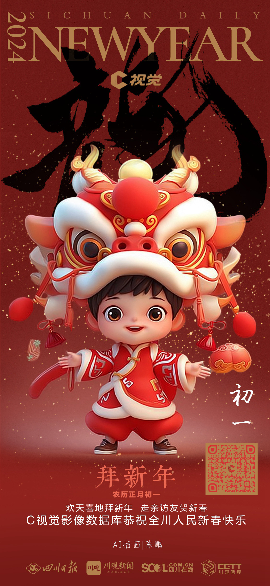 龙年春节,C视觉影像数据库的插画师结合AI人工智能绘画,设计了一组节日海报,给您送上了新春的祝福。愿您2024,所想皆所愿,所行皆坦途。