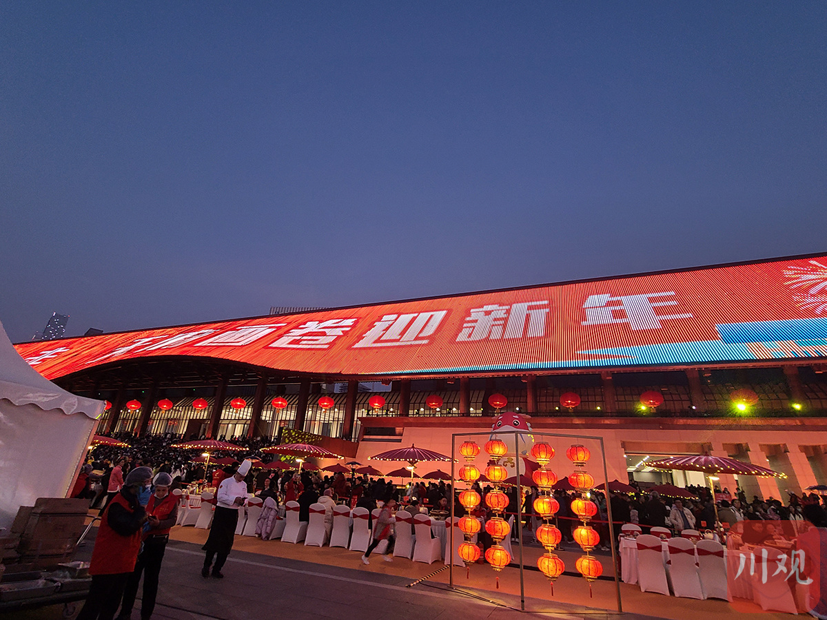 看着408米长的大屏上的央视春晚,在秦皇湖边的缤纷会场流连、徜徉,晚上9点过,已有超过3万名成都市民相聚在天府国际会议中心广场,欢度除夕夜。成都市民王礼明挤在人群中开心地说:“第一次这样过年,太有意思,太开心了!”