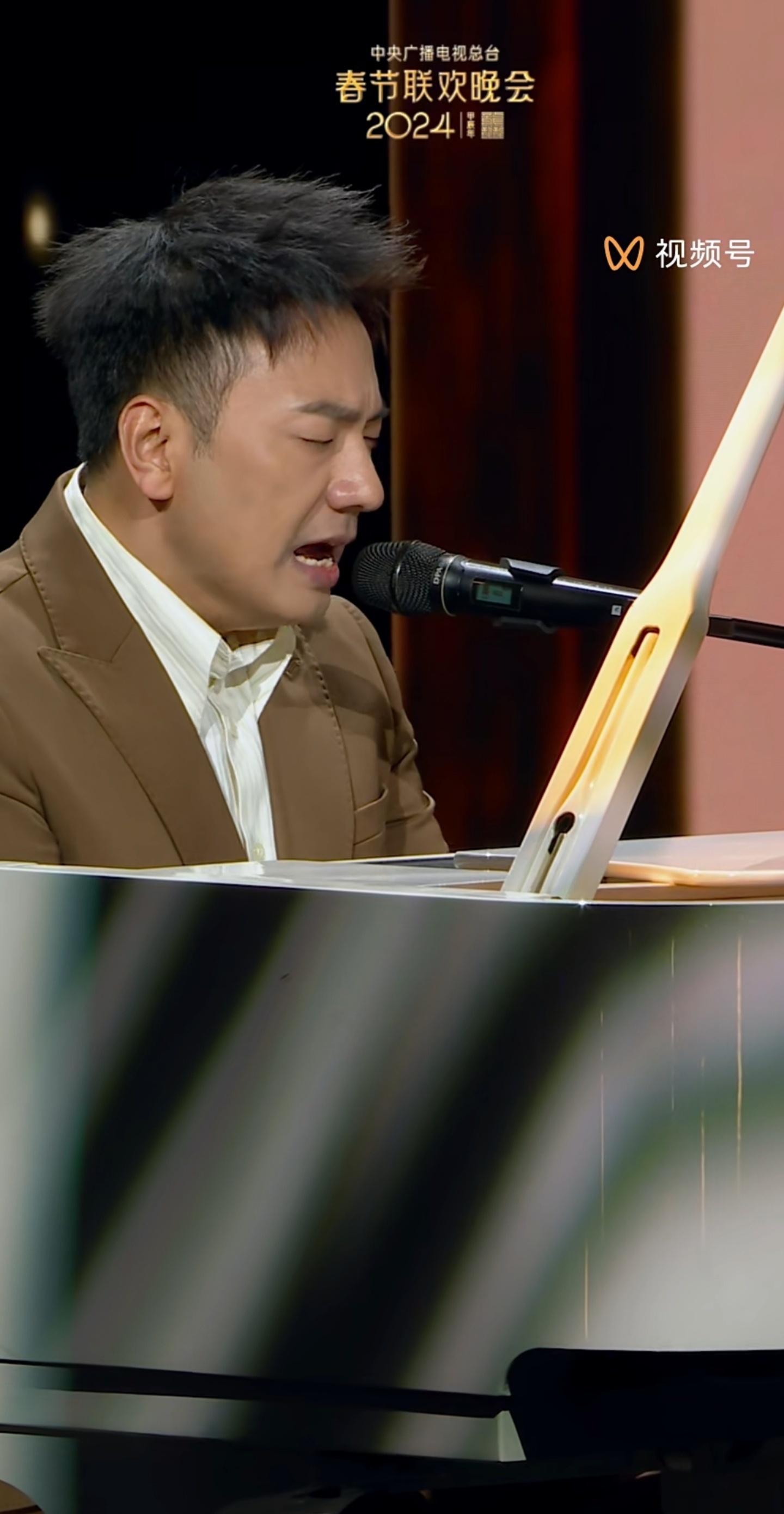 海来阿木:这是我第一次荧幕前自弹自唱,而且还是在这么隆重的场合。在此之前我其实不会弹钢琴,在收到了导演组发来的舞美设计后,为了能给观众朋友们带来不一样的体验,我专门去学习了弹钢琴。由于时间紧迫,现场表演的时候自己还挺紧张。