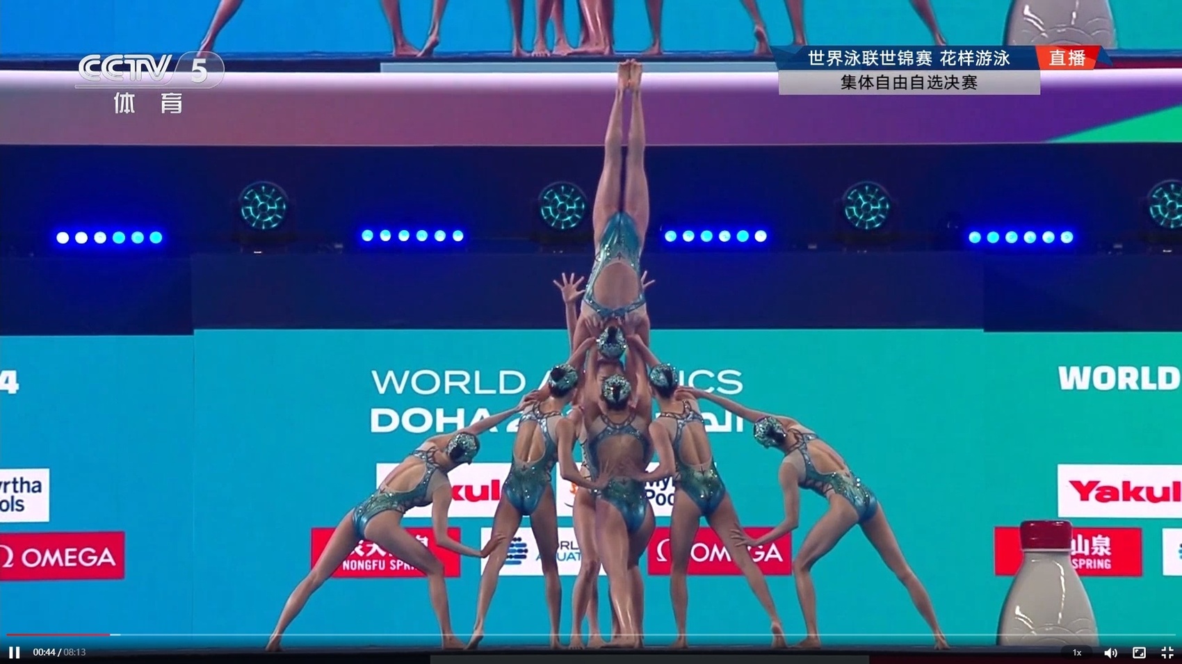 ▷在卡塔尔多哈举行的世界游泳锦标赛花样游泳集体自由自选决赛中,中国队收获金牌。