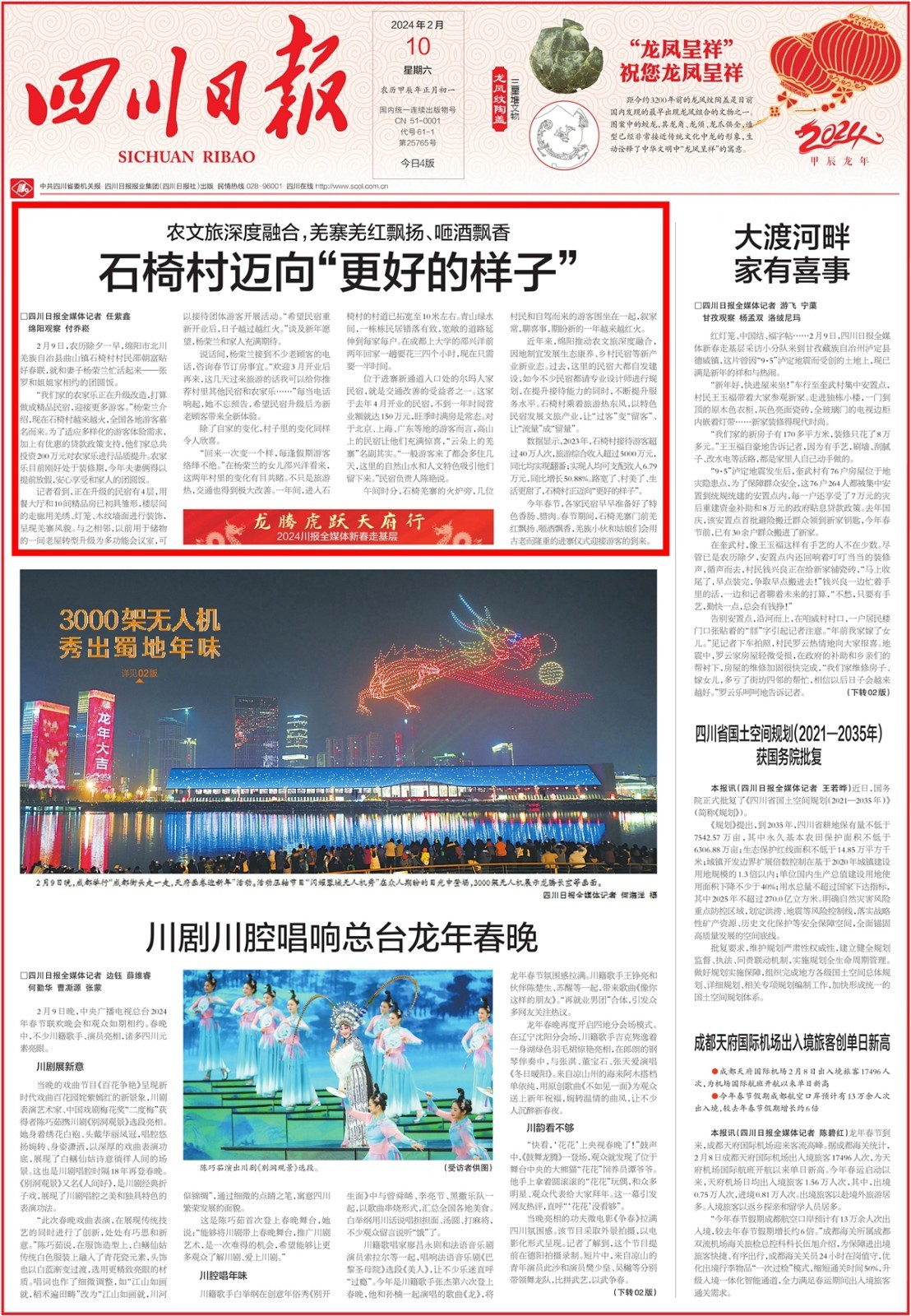 2024年2月10日 《四川日报》头版头条 原文如下↓