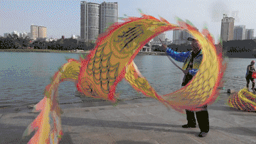 他们还将龙从陆地舞到了水上