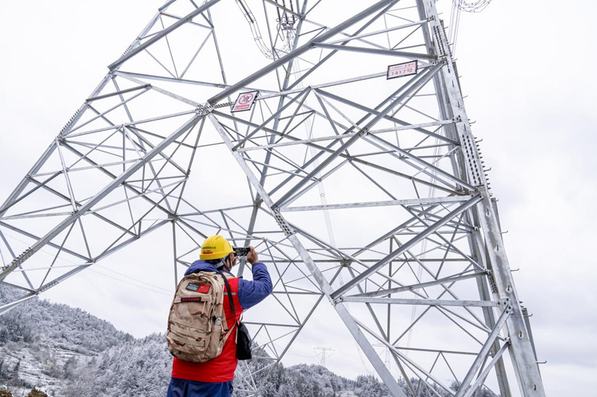 连日来,重庆多个区县迎来冰冻雨雪天气,部分高海拔山区导线出现轻微覆冰。为应对本轮寒潮天气对特高压线路的影响,国网重庆市电力公司组织各属地运维人员顶风冒雪,采用“人工+无人机”巡检方式,对山区易覆冰段线路开展观冰及特殊巡检,全力确保节日期间电网安全稳定运行。