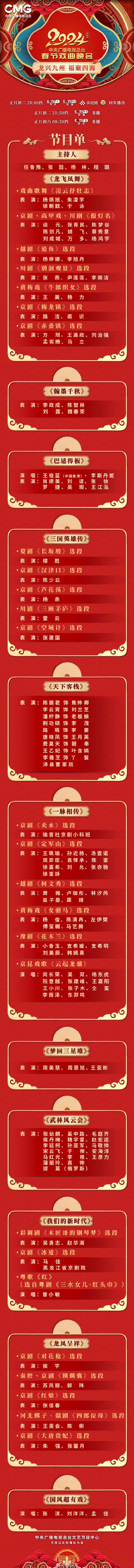 2月11日,中央广播电视总台《2024年春节戏曲晚会》(以下简称“春戏晚”)节目单正式发布。今年的春节戏曲晚会落户四川德阳,节目单满满四川元素,众多四川“老朋友”登台亮相。