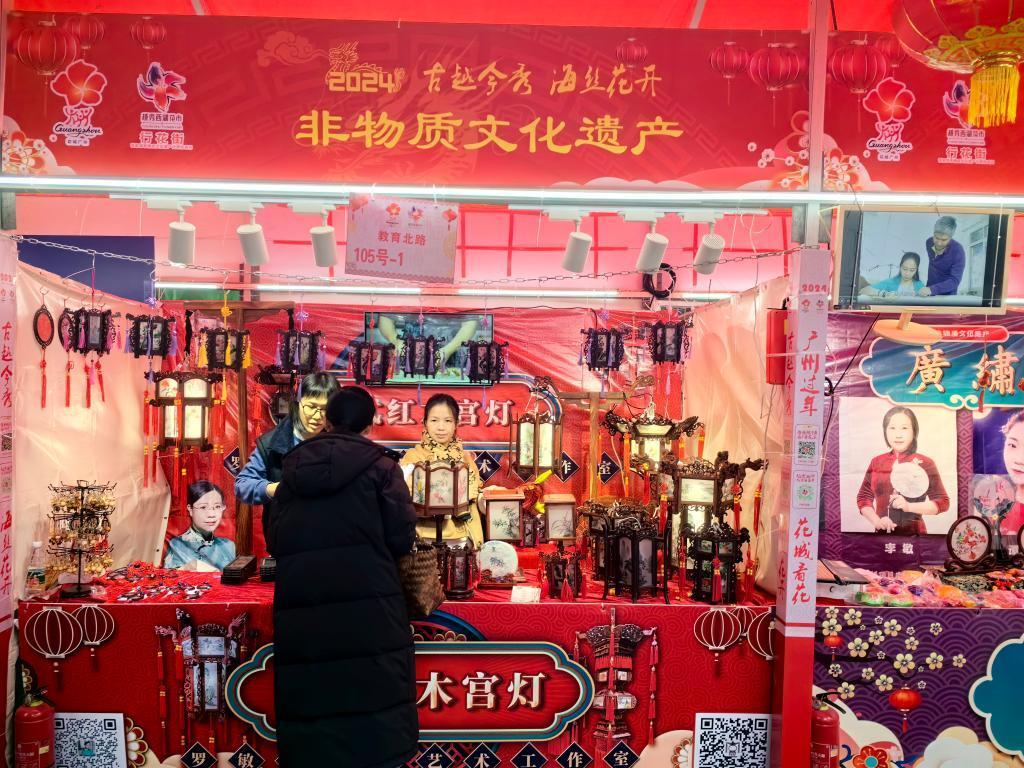 广州榄雕、广绣、打铜工艺、广州醒狮、广州饼印、粤语相声、广式红木宫灯等8个非遗项目亮相花市,吸引游客驻足观赏。现场展出的160多个卖花档口中,粉色的剑兰、洁白的百合、火红的玫瑰、金灿灿的年橘等依旧是“抢手货”,而具有“财源滚滚来”意头的吊钟花也得到不少市民的青睐。