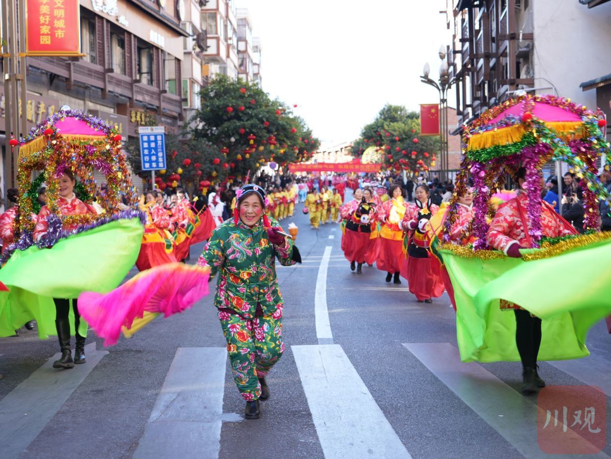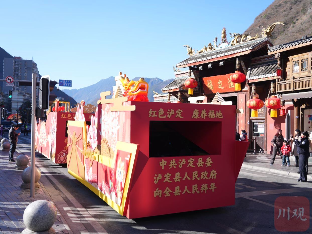 迎新春民俗文化巡游展演活动是泸定县新春文旅活动中的传统项目。2月11日,农历大年初二,以“心系泸定情·建功新时代”为主题的龙年新春民俗巡游活动热闹开演,红色泸定年味十足,处处洋溢着热闹欢乐的节日氛围。