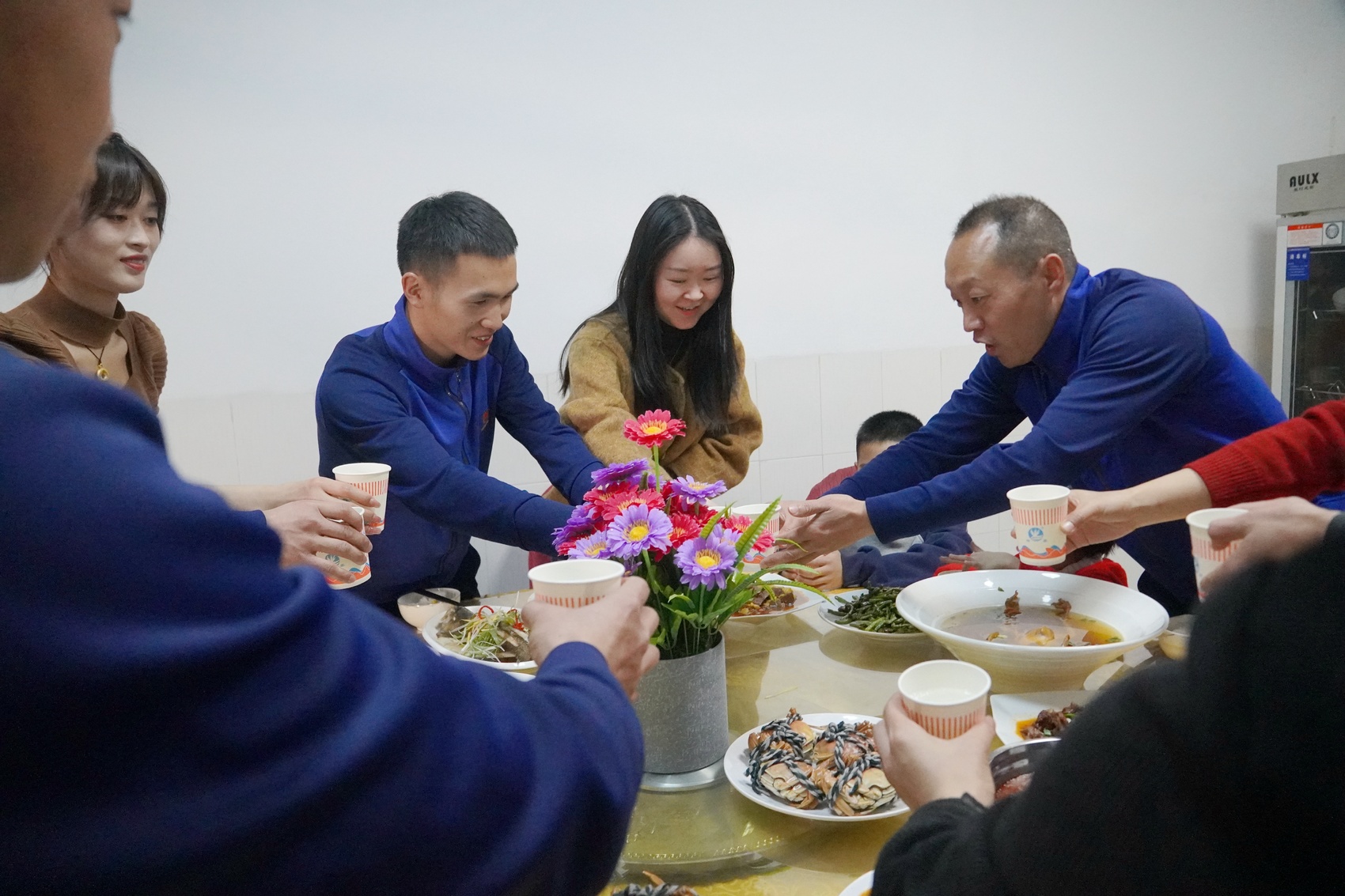李明挺和妻子熊一档一起吃团圆饭共度佳节。