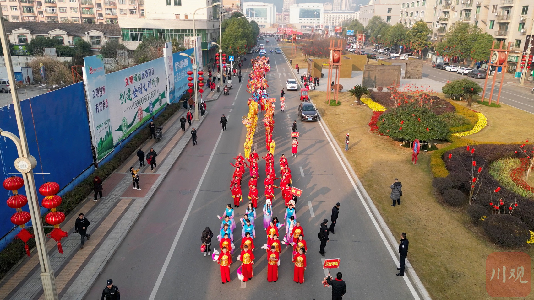 2月11日,大年初二,“瑞龙华章 共赴辉煌”—非遗文化大拜年主题活动在遂宁市大英县举行,众多非遗文化和民俗节目通过游演的方式走进街角路边,500余人的游演团队敲锣打鼓,现场一片喜庆祥和的景象。