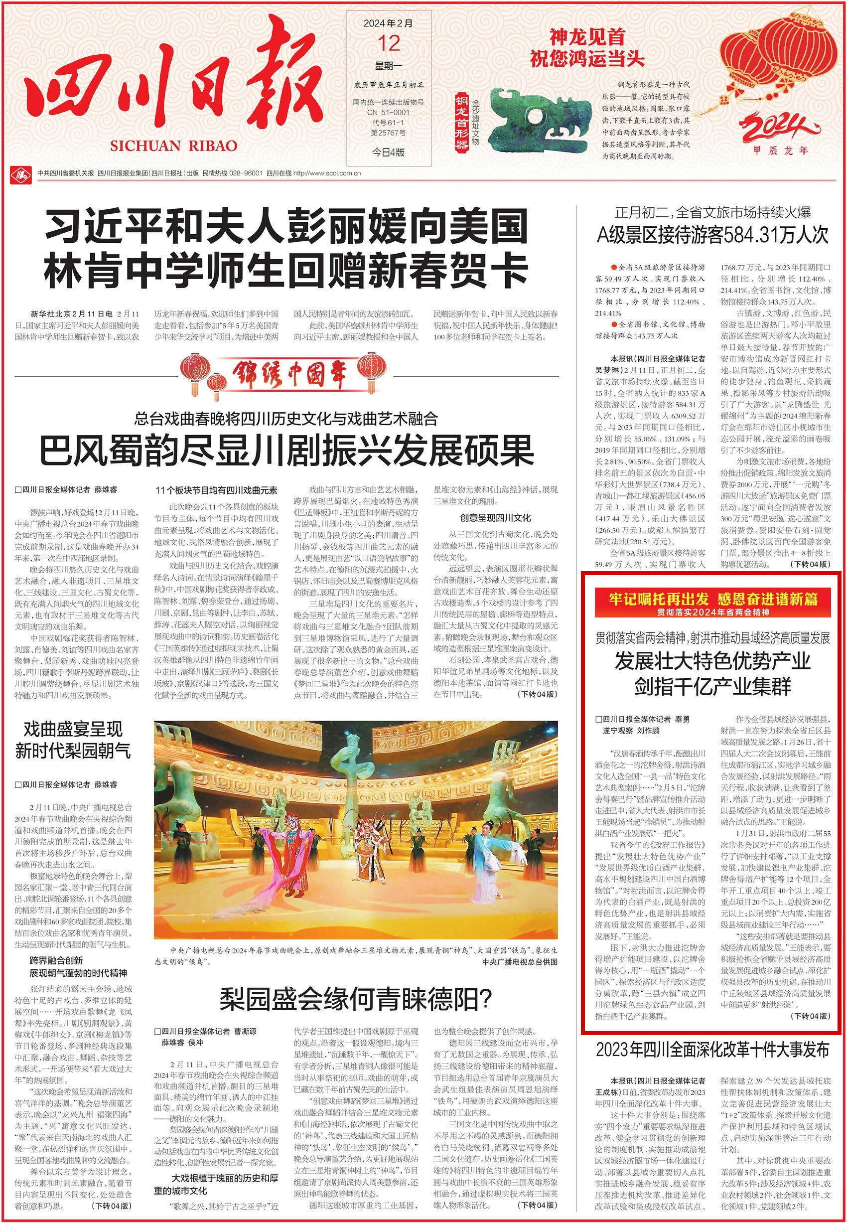 《四川日报》2024年2月12日 头版