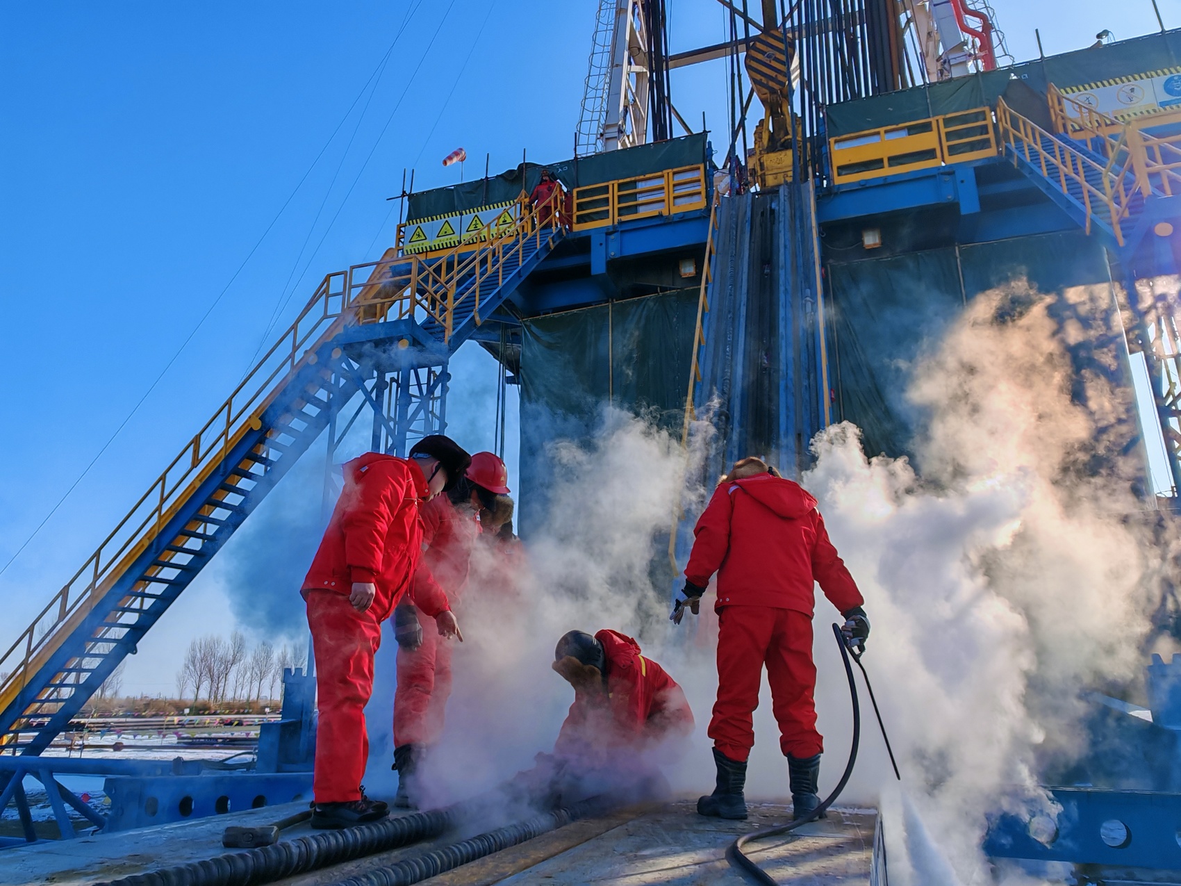 “近期连续降雪降温天气给钻井工作造成不利影响,再加上井下地质条件比较复杂,每一根套管下井都得精心安排,减少套管下入遇阻、漏失风险。”黄智扯着嗓子,指挥工友们把一根根套管对扣、上紧、下入。