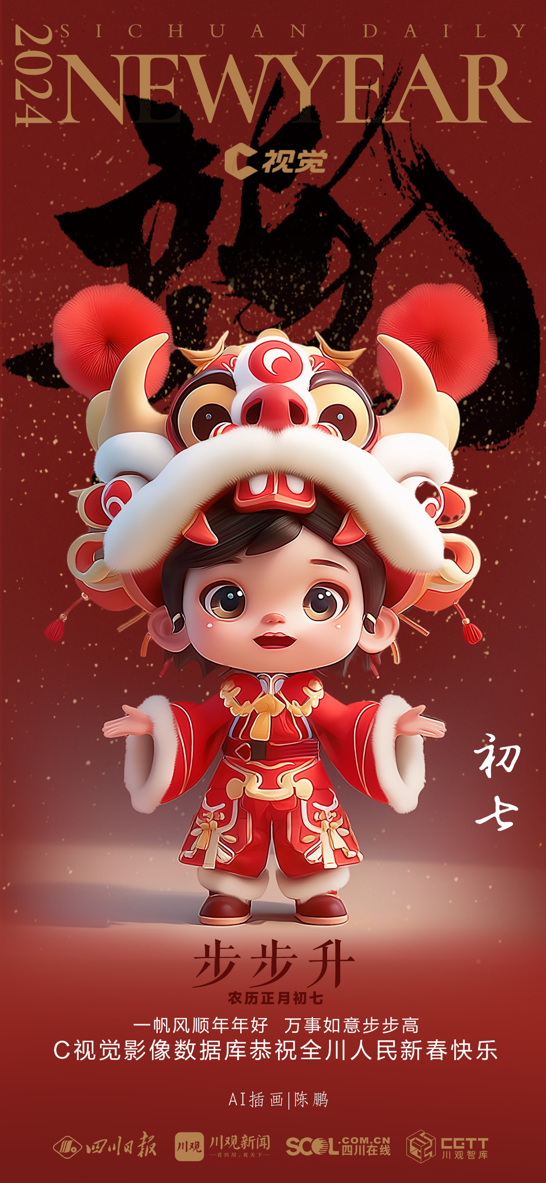 龙年春节,C视觉影像数据库的插画师结合AI人工智能绘画,设计了一组节日海报,给您送上新春的祝福。愿您2024,所想皆所愿,所行皆坦途。