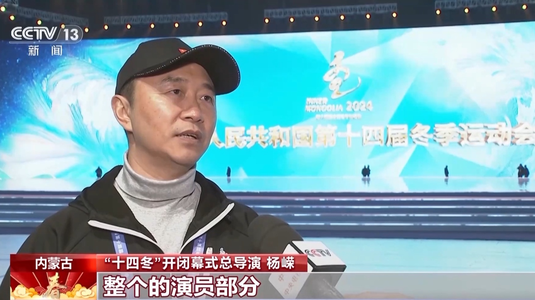 “十四冬”开闭幕式总导演 杨嵘:在真的赛道中,我们真的滑冰运动员,在舞台上的舞蹈演员,两者完全融为一体,台上台下运动项目参与到了我们舞台表演里面。