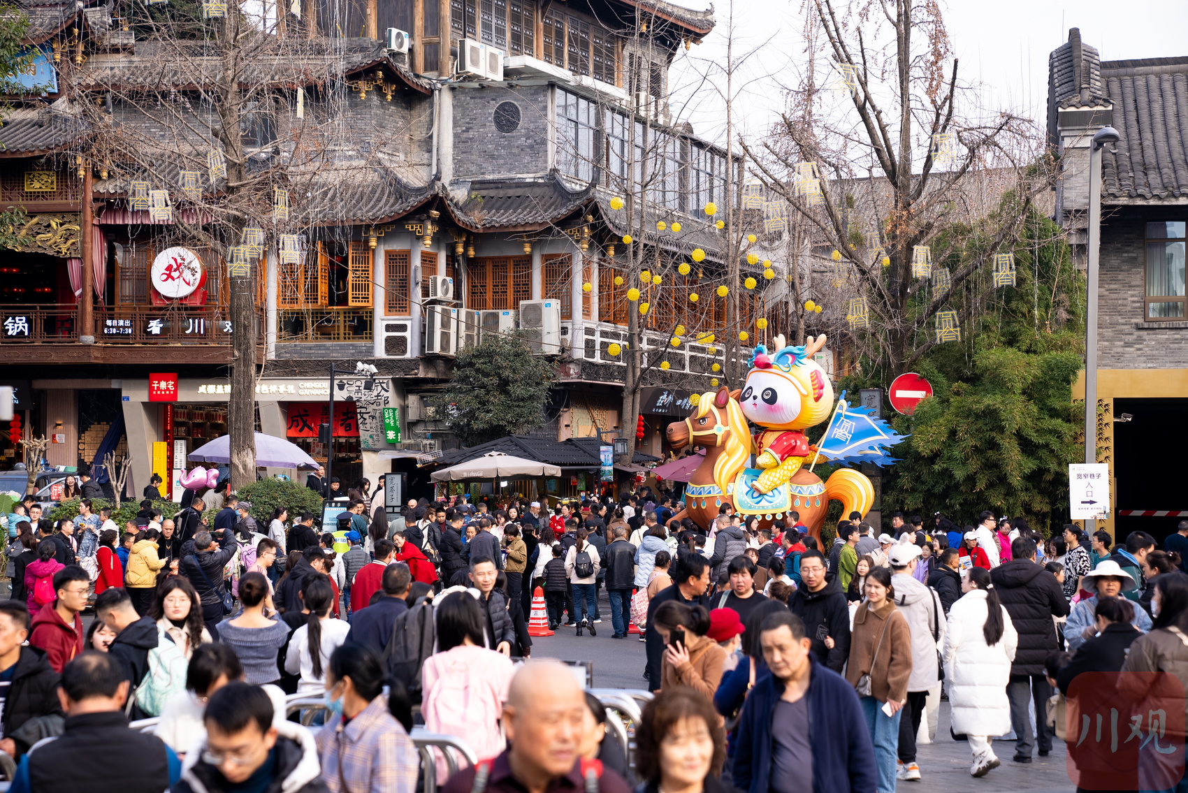 2月17日,熙熙攘攘的市民游客相聚宽窄巷子。