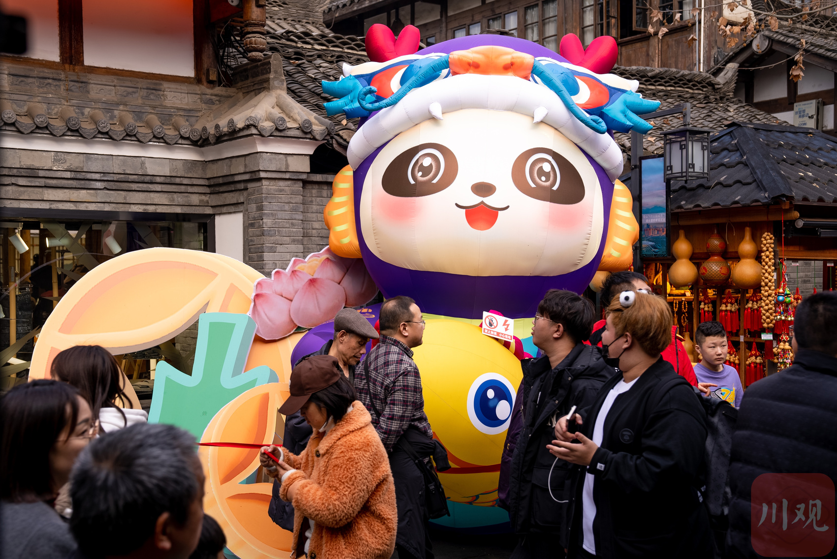2月17日,宽窄巷子景区里面的熊猫形象。