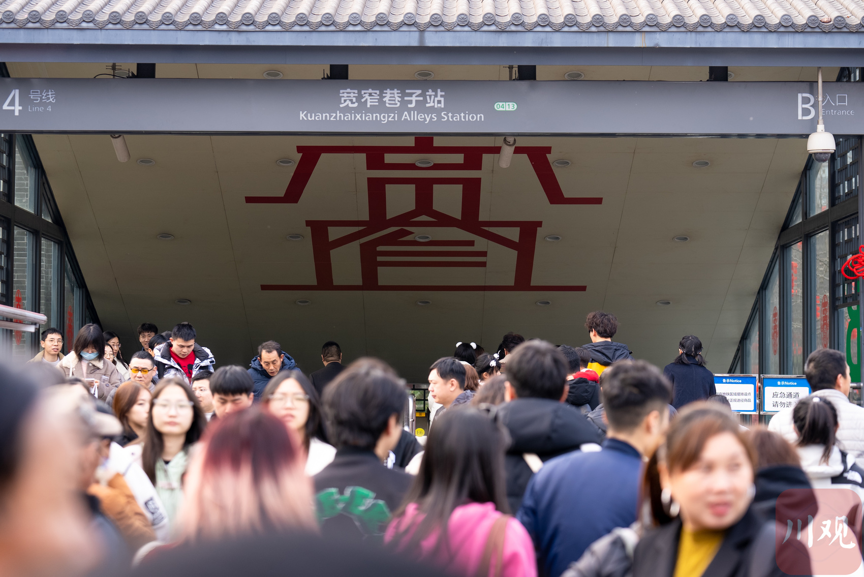 2月17日,成都地铁宽窄巷子站外面人头攒动。