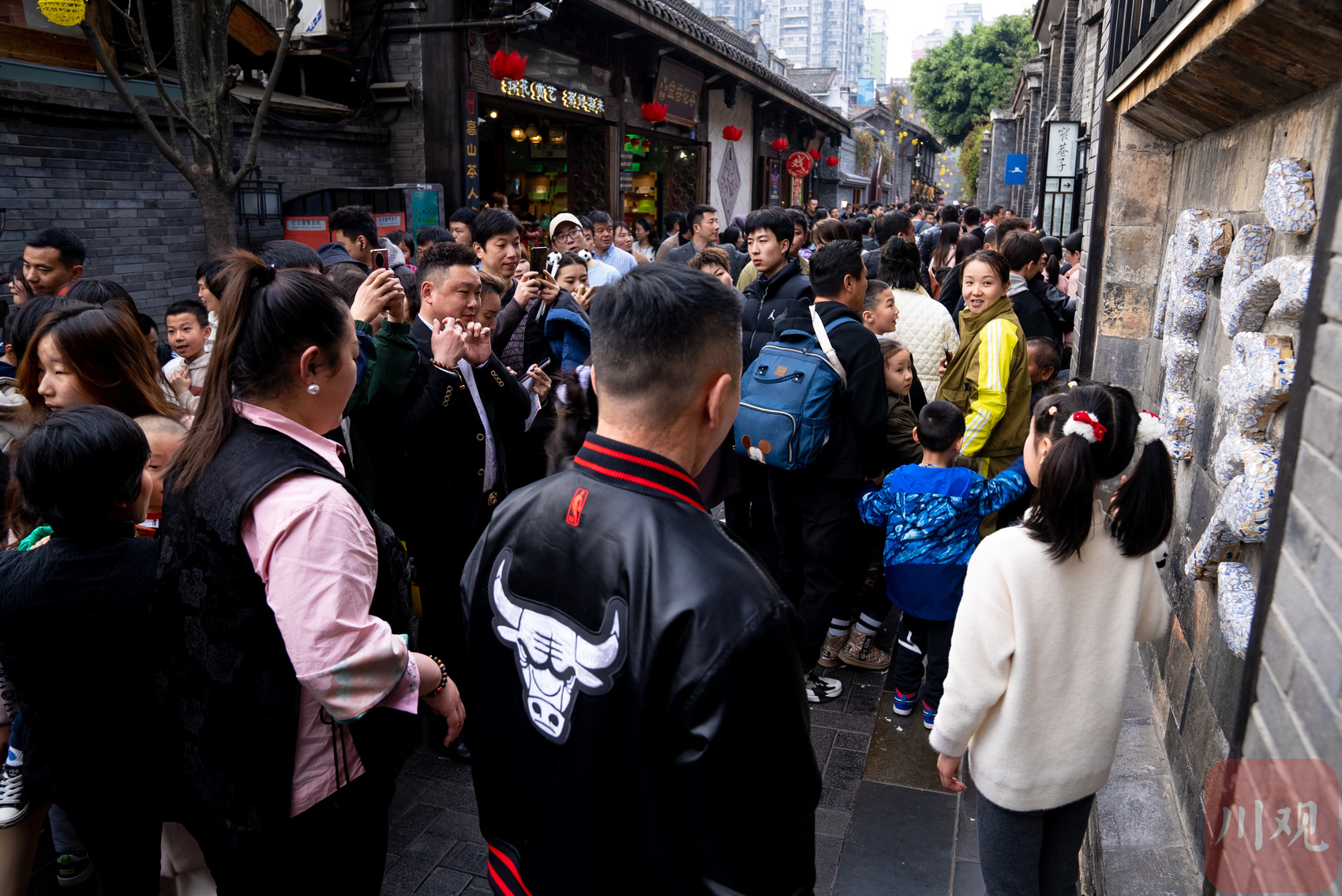 2月17日,大年初八,春节假期的最后一天。记者在成都宽窄巷子看到,景区内人头攒动,气氛热烈欢腾。拍照打卡、品尝美食、体验民俗文化,熙熙攘攘的市民游客相聚宽窄巷子,共度美好欢乐的假期。