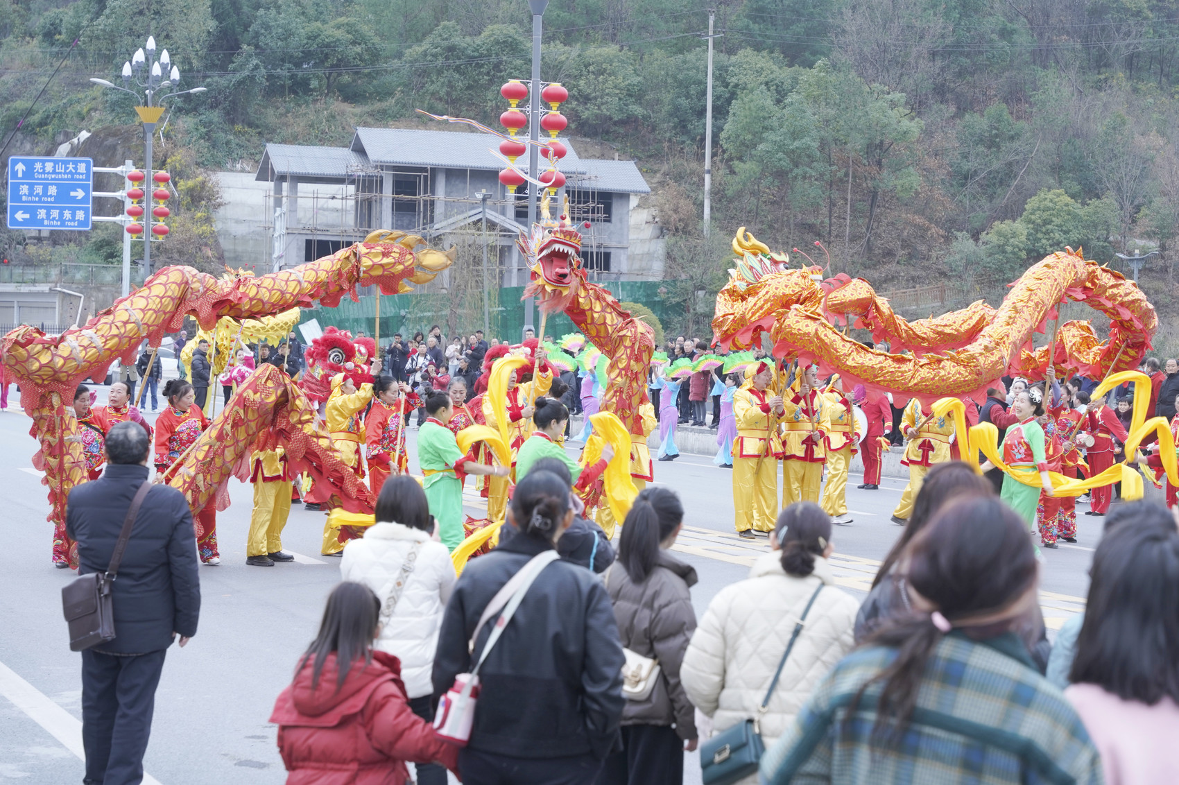 “咚咚锵、咚咚锵、咚咚隆咚锵……”2月16日,农历正月初七,在巴中市南江县集州街道断渠公园,6支龙狮队身着鲜艳的服装,舞动着各式彩龙精彩亮相。龙狮队旁,绸扇队、腰鼓队分别挥舞着彩带、敲打着腰鼓为之欢呼雀跃,活动现场锣鼓喧天、人头攒动,吸引了上万名群众驻足观看,并不时发出阵阵喝彩声。