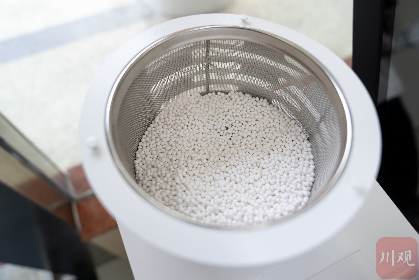 高新蜂鸟智能硬件中试平台的展厅里,展示着绿碳未来(四川)科技有限公司的核心产品:呼吸式捕蚊机。