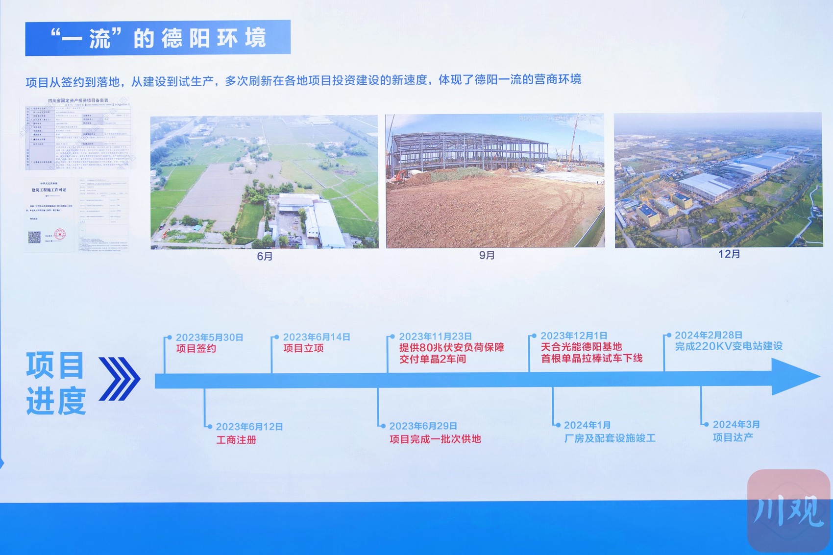 全程见证了天合光能(德阳)晶硅有限公司落地的四川什邡经济开发区管委会主任刘阳阳介绍,整个项目从签约到试产,什邡市方面先后拟定了140项任务清单,召开了157次调度会议,121次现场办公,“超常规、超进度、超预期,实现了‘当年签约,当年建成、当年投产’。”