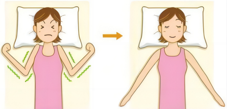 指导病人取舒适的坐位或卧位,按照躯体从上到下的顺序,逐渐对各部位的肌肉先收缩,同时深吸气和体验紧张的感觉,然后迅速完全放松,同时深呼气和体验放松的感觉,反复练习数次。