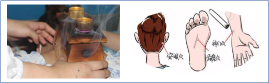中医外治疗法:根据失眠证候分型,在特定穴位、经络等进行温针、灸法、穴位敷贴(引火归元贴)、耳穴埋豆等中医外治疗法操作刺激人体的穴位,以调节人体的气血运行,从而达到治疗疾病、保健养生的目的。举例如下: