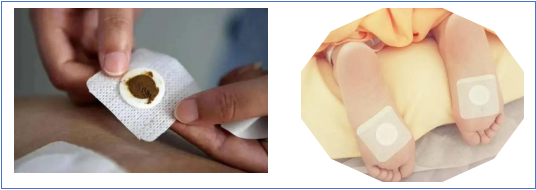 指在一定的穴位上贴敷药物,经体表皮肤对药物有效成分的吸收,发挥明显的药理效应和穴位刺激的双重作用以达到治疗、预防疾病的一种外治方法。我科有特色灸法“引火归元贴”等疗法。