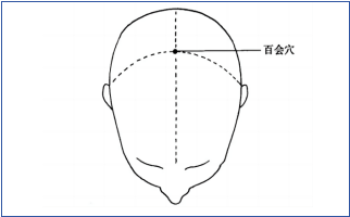(3)百会穴:在头部,后发际正中上7寸,当两耳尖直上,头顶正中。