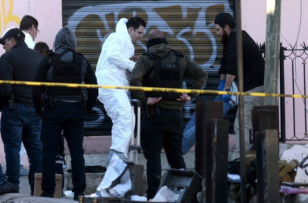 2月18日,法医在墨西哥哈利斯科州特拉克帕克的枪击事件现场附近调查。